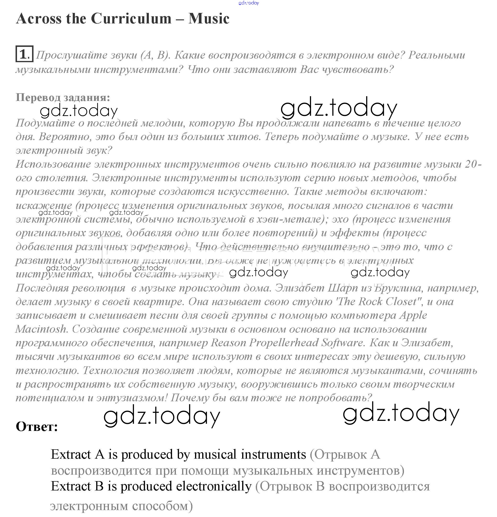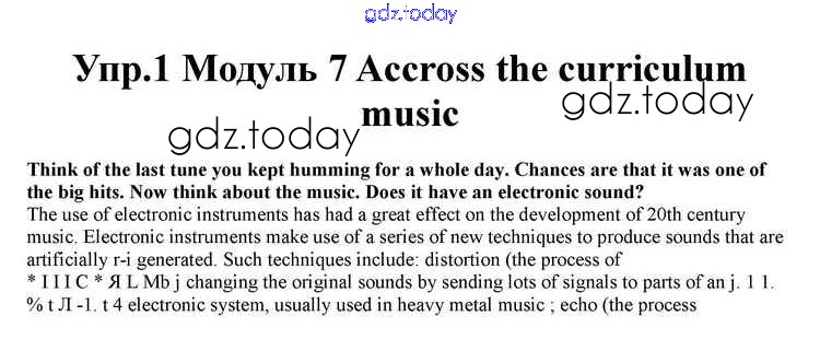 На страницах сайта gdz.today вы найдете учебный и вспомогательный материал, направленный на улучшения знаний школьной программы. ГДЗ - онлайн мир знаний Accross the curriculum Music Решение к Module 7 1 Учебнику по Английскому языку для 10 класса Афанасьева, Дули Просвещение Spotlight 2015