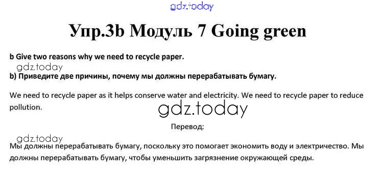 На страницах сайта gdz.today вы найдете учебный и вспомогательный материал, направленный на улучшения знаний школьной программы. ГДЗ - онлайн мир знаний Going green Решение к Module 7 3b Учебнику по Английскому языку для 10 класса Афанасьева, Дули Просвещение Spotlight 2015