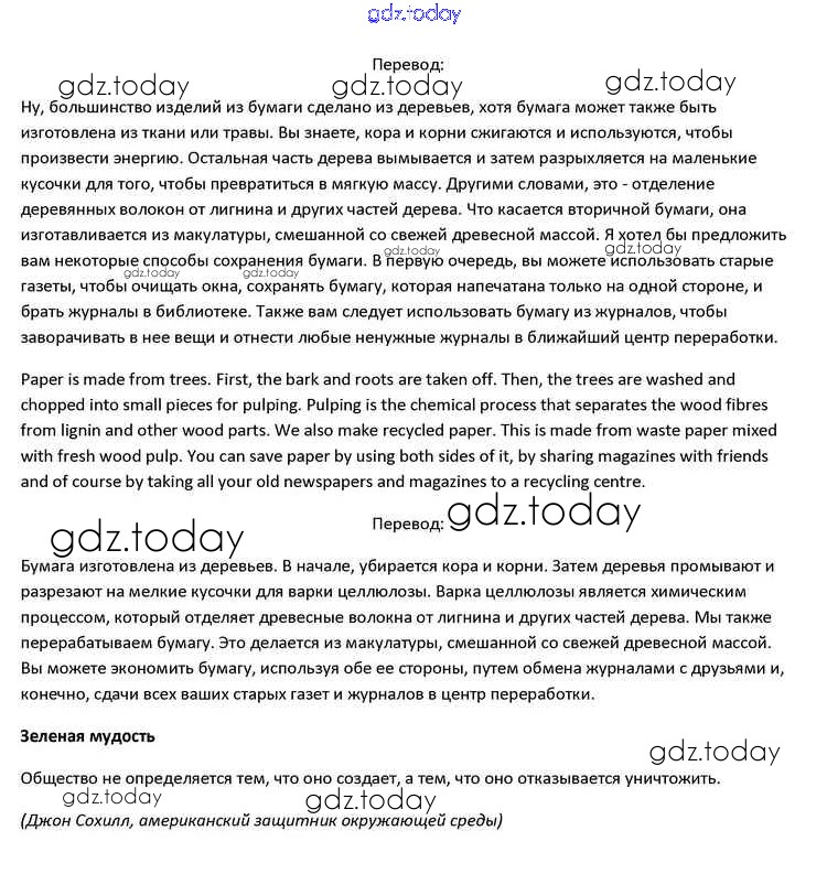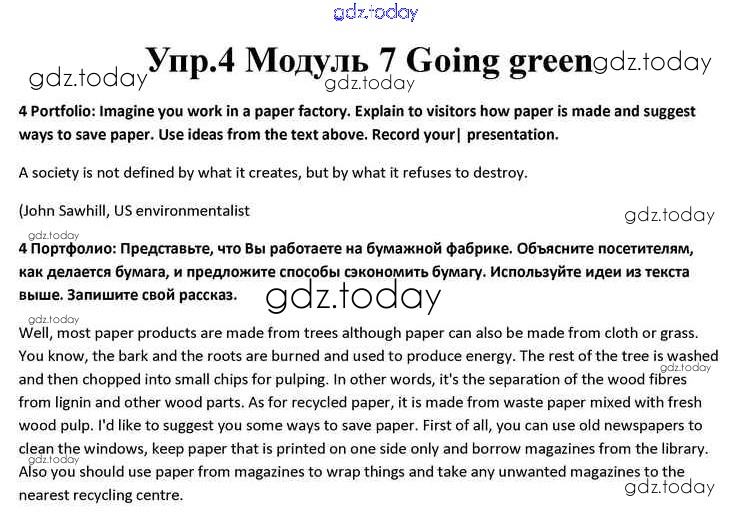На страницах сайта gdz.today вы найдете учебный и вспомогательный материал, направленный на улучшения знаний школьной программы. ГДЗ - онлайн мир знаний Going green Решение к Module 7 4 Учебнику по Английскому языку для 10 класса Афанасьева, Дули Просвещение Spotlight 2015