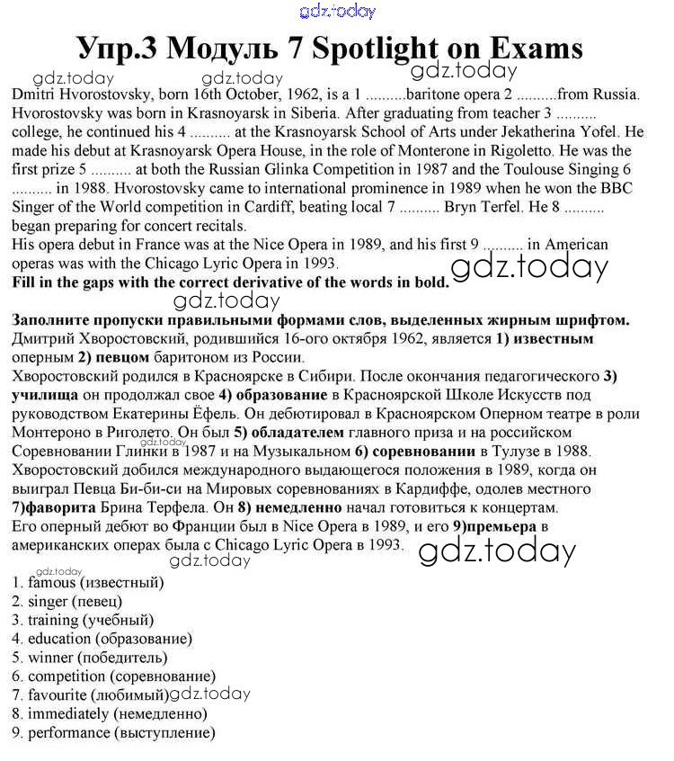 На страницах сайта gdz.today вы найдете учебный и вспомогательный материал, направленный на улучшения знаний школьной программы. ГДЗ - онлайн мир знаний Spotlight on Exams Решение к Module 7 3 Учебнику по Английскому языку для 10 класса Афанасьева, Дули Просвещение Spotlight 2015