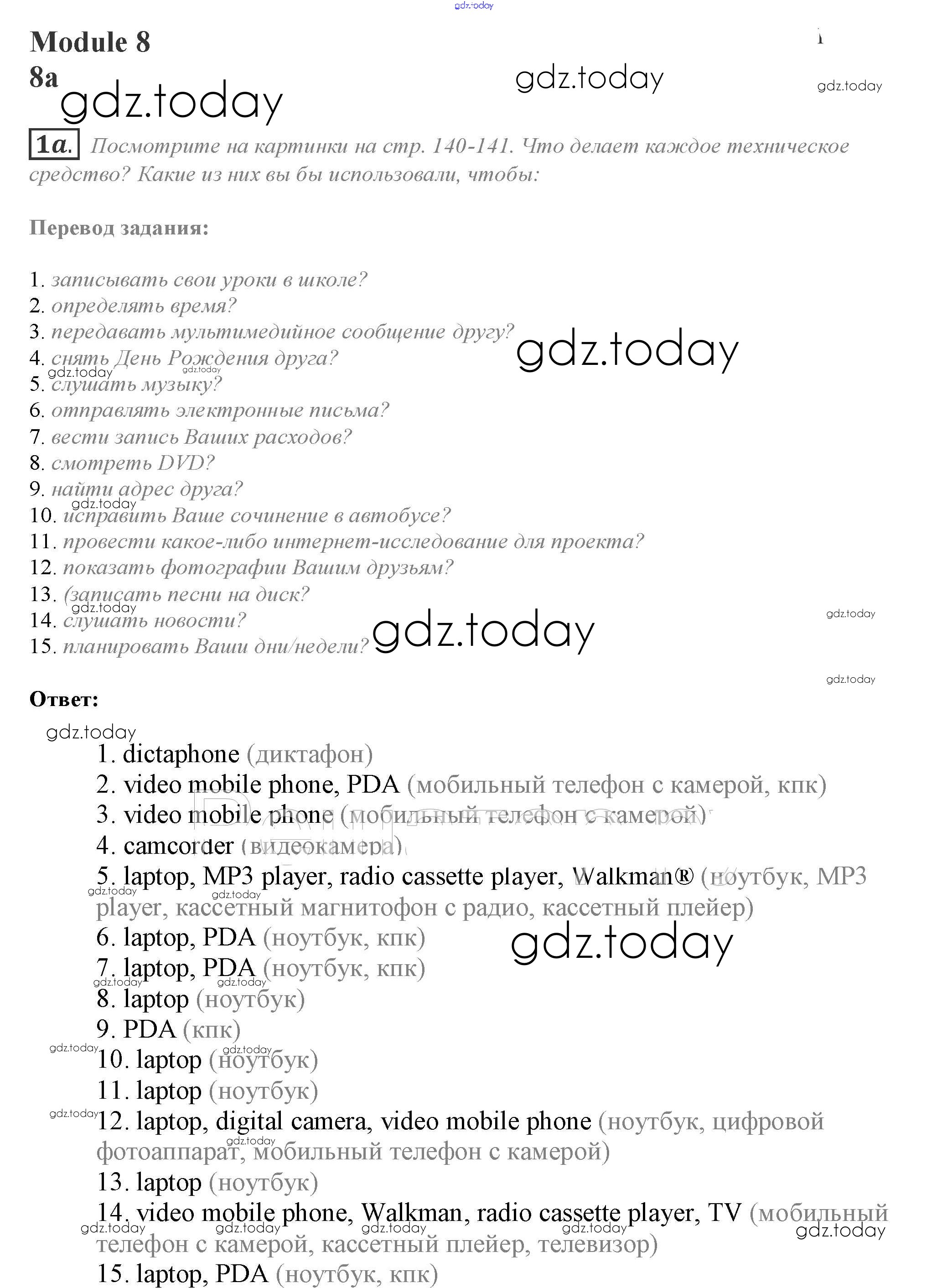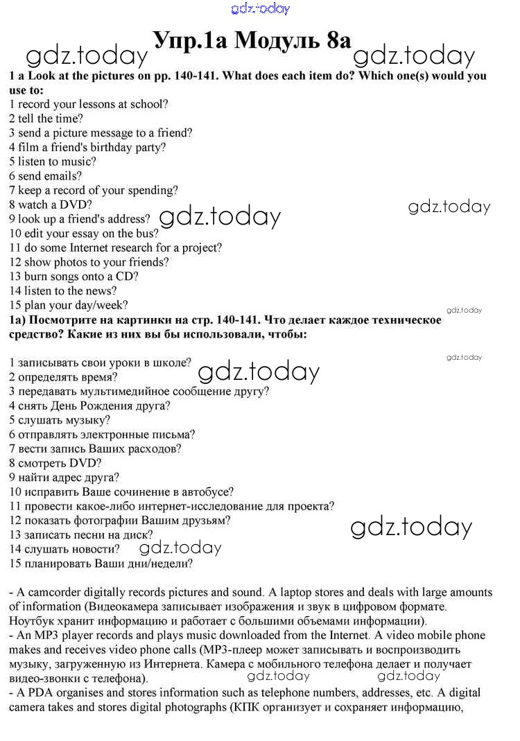 На страницах сайта gdz.today вы найдете учебный и вспомогательный материал, направленный на улучшения знаний школьной программы. ГДЗ - онлайн мир знаний Часть 8a Решение к Module 8 1a Учебнику по Английскому языку для 10 класса Афанасьева, Дули Просвещение Spotlight 2015