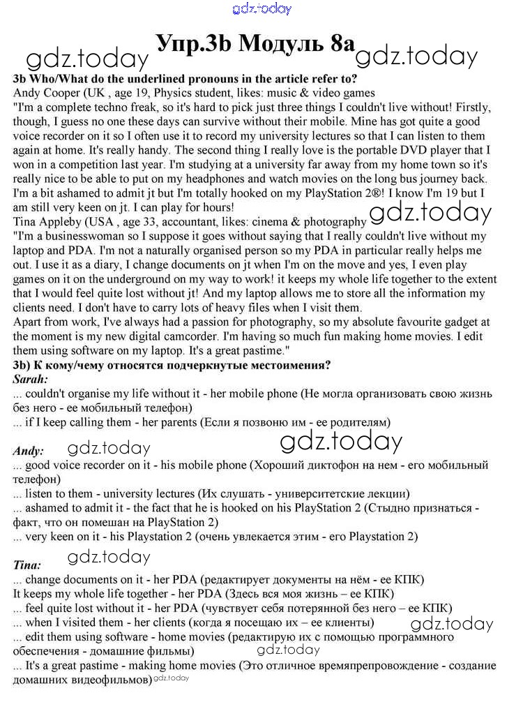 На страницах сайта gdz.today вы найдете учебный и вспомогательный материал, направленный на улучшения знаний школьной программы. ГДЗ - онлайн мир знаний Часть 8a Решение к Module 8 3b Учебнику по Английскому языку для 10 класса Афанасьева, Дули Просвещение Spotlight 2015