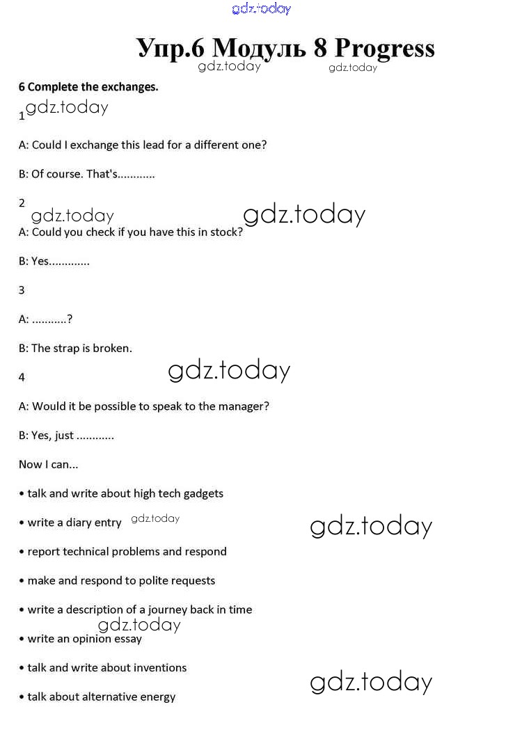 На страницах сайта gdz.today вы найдете учебный и вспомогательный материал, направленный на улучшения знаний школьной программы. ГДЗ - онлайн мир знаний Progress Check Решение к Module 8 6 Учебнику по Английскому языку для 10 класса Афанасьева, Дули Просвещение Spotlight 2015