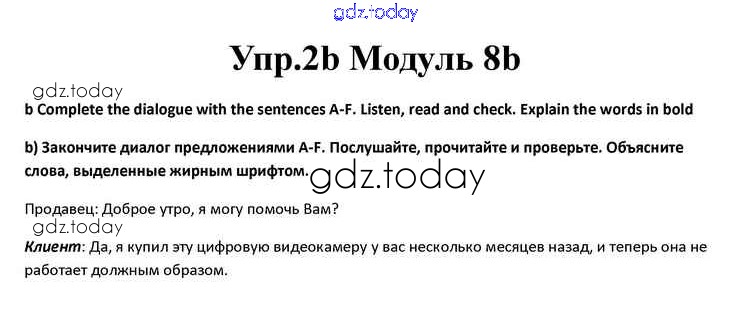 На страницах сайта gdz.today вы найдете учебный и вспомогательный материал, направленный на улучшения знаний школьной программы. ГДЗ - онлайн мир знаний Часть 8b Решение к Module 8 2b Учебнику по Английскому языку для 10 класса Афанасьева, Дули Просвещение Spotlight 2015