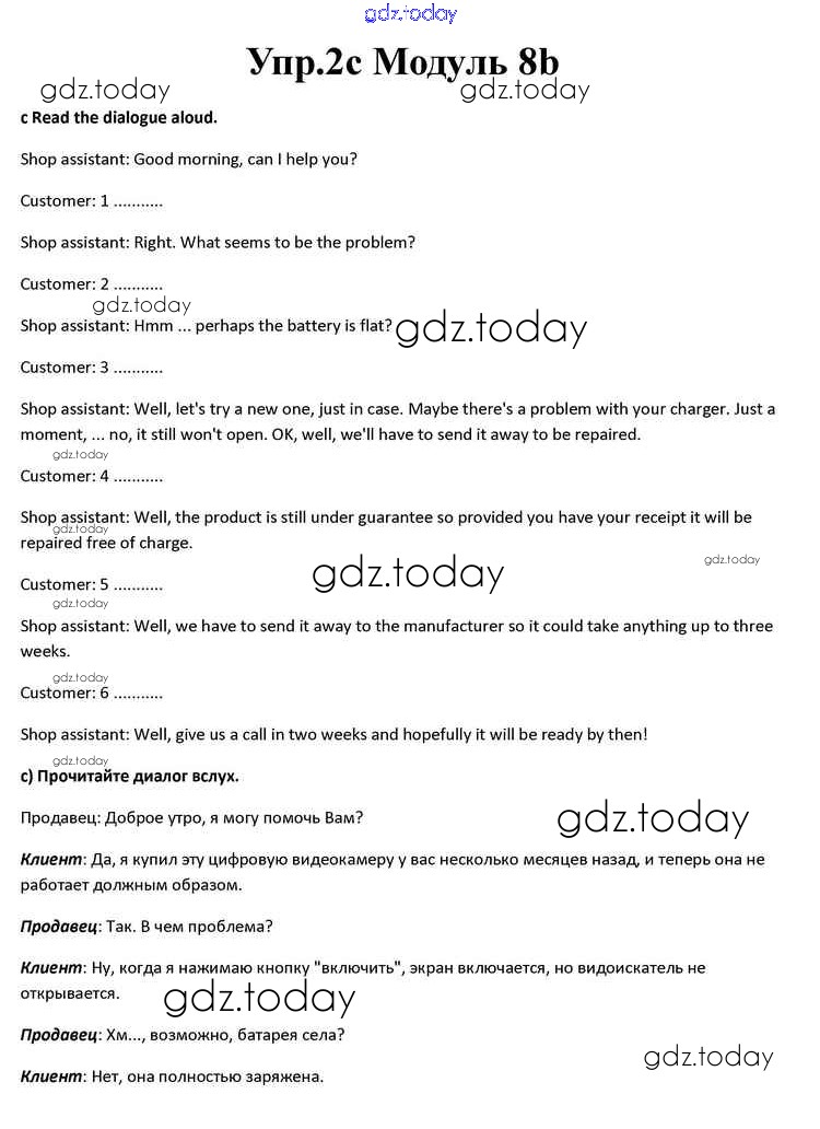 На страницах сайта gdz.today вы найдете учебный и вспомогательный материал, направленный на улучшения знаний школьной программы. ГДЗ - онлайн мир знаний Часть 8b Решение к Module 8 2c Учебнику по Английскому языку для 10 класса Афанасьева, Дули Просвещение Spotlight 2015
