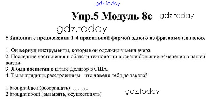 На страницах сайта gdz.today вы найдете учебный и вспомогательный материал, направленный на улучшения знаний школьной программы. ГДЗ - онлайн мир знаний Часть 8c Решение к Module 8 5 Учебнику по Английскому языку для 10 класса Афанасьева, Дули Просвещение Spotlight 2015