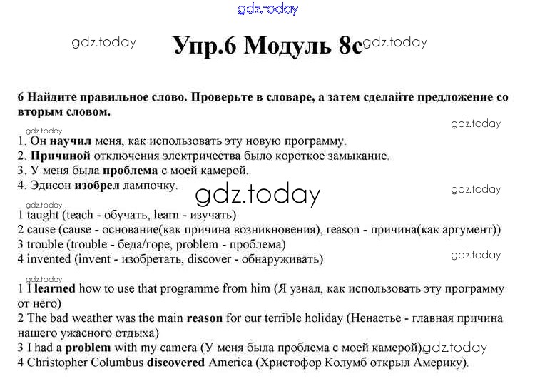 На страницах сайта gdz.today вы найдете учебный и вспомогательный материал, направленный на улучшения знаний школьной программы. ГДЗ - онлайн мир знаний Часть 8c Решение к Module 8 6 Учебнику по Английскому языку для 10 класса Афанасьева, Дули Просвещение Spotlight 2015
