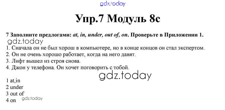 На страницах сайта gdz.today вы найдете учебный и вспомогательный материал, направленный на улучшения знаний школьной программы. ГДЗ - онлайн мир знаний Часть 8c Решение к Module 8 7 Учебнику по Английскому языку для 10 класса Афанасьева, Дули Просвещение Spotlight 2015