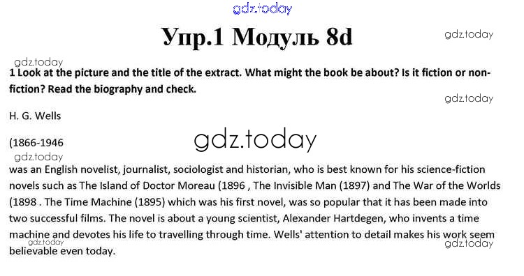 На страницах сайта gdz.today вы найдете учебный и вспомогательный материал, направленный на улучшения знаний школьной программы. ГДЗ - онлайн мир знаний Часть 8d Решение к Module 8 1 Учебнику по Английскому языку для 10 класса Афанасьева, Дули Просвещение Spotlight 2015