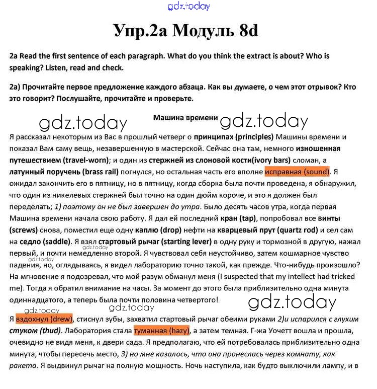 На страницах сайта gdz.today вы найдете учебный и вспомогательный материал, направленный на улучшения знаний школьной программы. ГДЗ - онлайн мир знаний Часть 8d Решение к Module 8 2a Учебнику по Английскому языку для 10 класса Афанасьева, Дули Просвещение Spotlight 2015