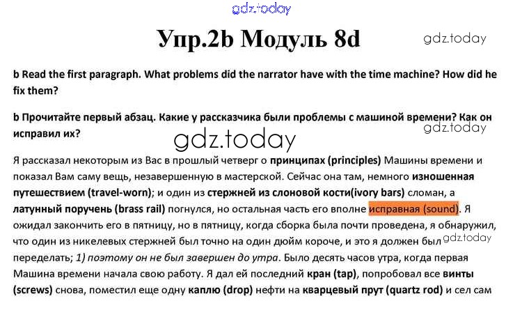 На страницах сайта gdz.today вы найдете учебный и вспомогательный материал, направленный на улучшения знаний школьной программы. ГДЗ - онлайн мир знаний Часть 8d Решение к Module 8 2b Учебнику по Английскому языку для 10 класса Афанасьева, Дули Просвещение Spotlight 2015