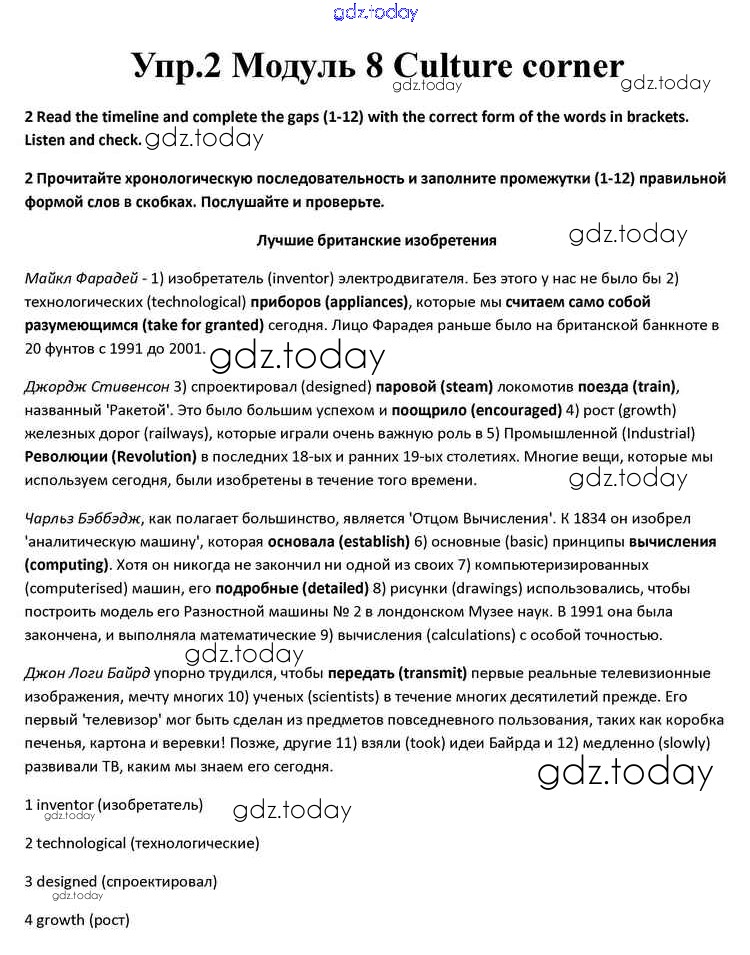 На страницах сайта gdz.today вы найдете учебный и вспомогательный материал, направленный на улучшения знаний школьной программы. ГДЗ - онлайн мир знаний Culture corner Решение к Module 8 2 Учебнику по Английскому языку для 10 класса Афанасьева, Дули Просвещение Spotlight 2015