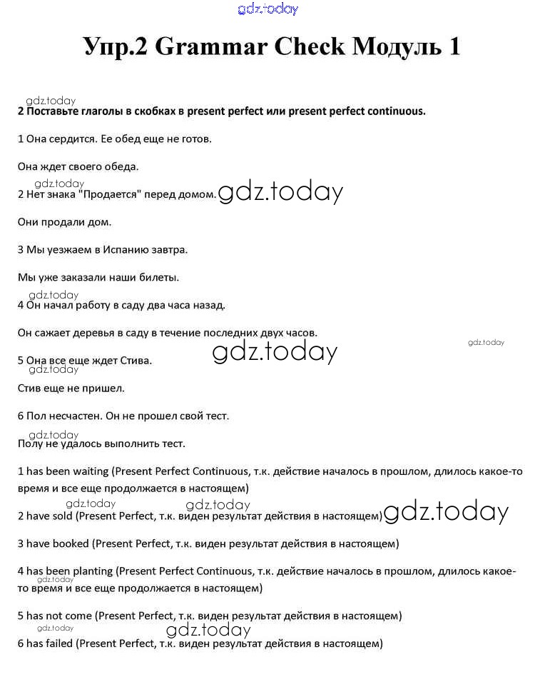 На страницах сайта gdz.today вы найдете учебный и вспомогательный материал, направленный на улучшения знаний школьной программы. ГДЗ - онлайн мир знаний Module 1 Grammar Check 2 Учебнику по Английскому языку для 10 класса Афанасьева, Дули Просвещение Spotlight 2015