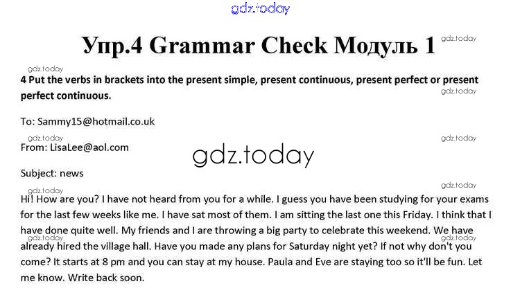 На страницах сайта gdz.today вы найдете учебный и вспомогательный материал, направленный на улучшения знаний школьной программы. ГДЗ - онлайн мир знаний Module 1 Grammar Check 4 Учебнику по Английскому языку для 10 класса Афанасьева, Дули Просвещение Spotlight 2015