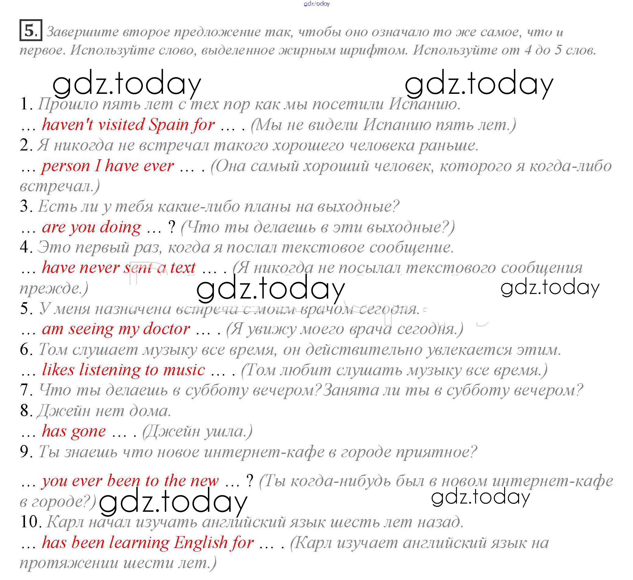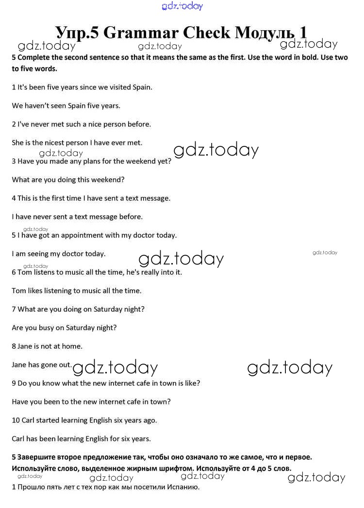 На страницах сайта gdz.today вы найдете учебный и вспомогательный материал, направленный на улучшения знаний школьной программы. ГДЗ - онлайн мир знаний Module 1 Grammar Check 5 Учебнику по Английскому языку для 10 класса Афанасьева, Дули Просвещение Spotlight 2015