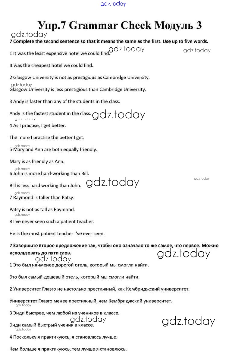 Ответы к Module 3 Grammar Check 7 Учебнику по Английскому языку для 10 класса Афанасьева, Дули Просвещение Spotlight 2015