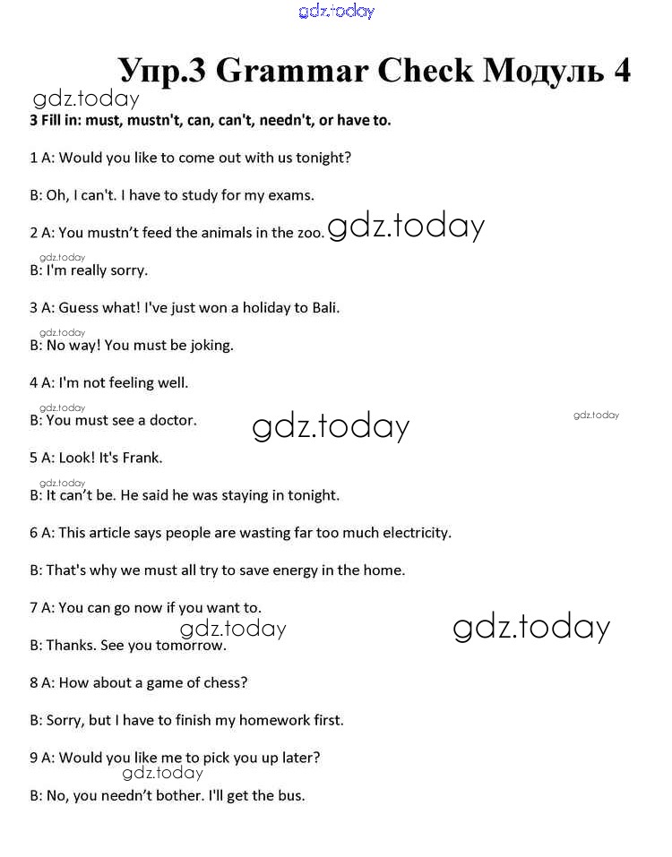 На страницах сайта gdz.today вы найдете учебный и вспомогательный материал, направленный на улучшения знаний школьной программы. ГДЗ - онлайн мир знаний Module 4 Grammar Check 3 Учебнику по Английскому языку для 10 класса Афанасьева, Дули Просвещение Spotlight 2015