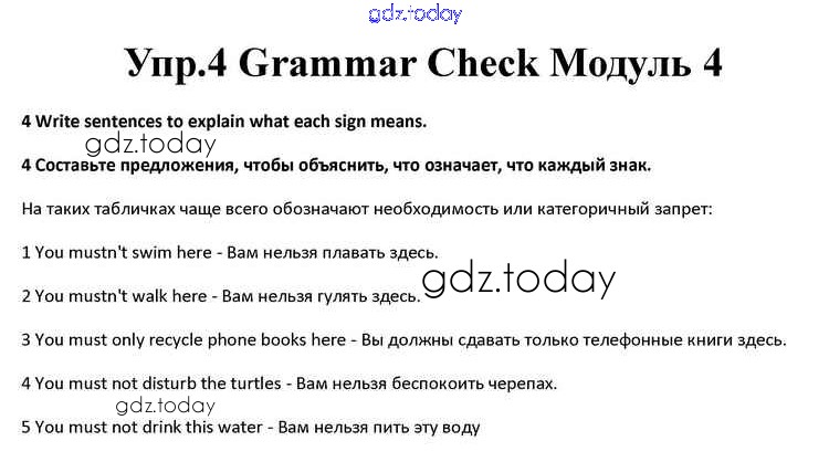 На страницах сайта gdz.today вы найдете учебный и вспомогательный материал, направленный на улучшения знаний школьной программы. ГДЗ - онлайн мир знаний Module 4 Grammar Check 4 Учебнику по Английскому языку для 10 класса Афанасьева, Дули Просвещение Spotlight 2015
