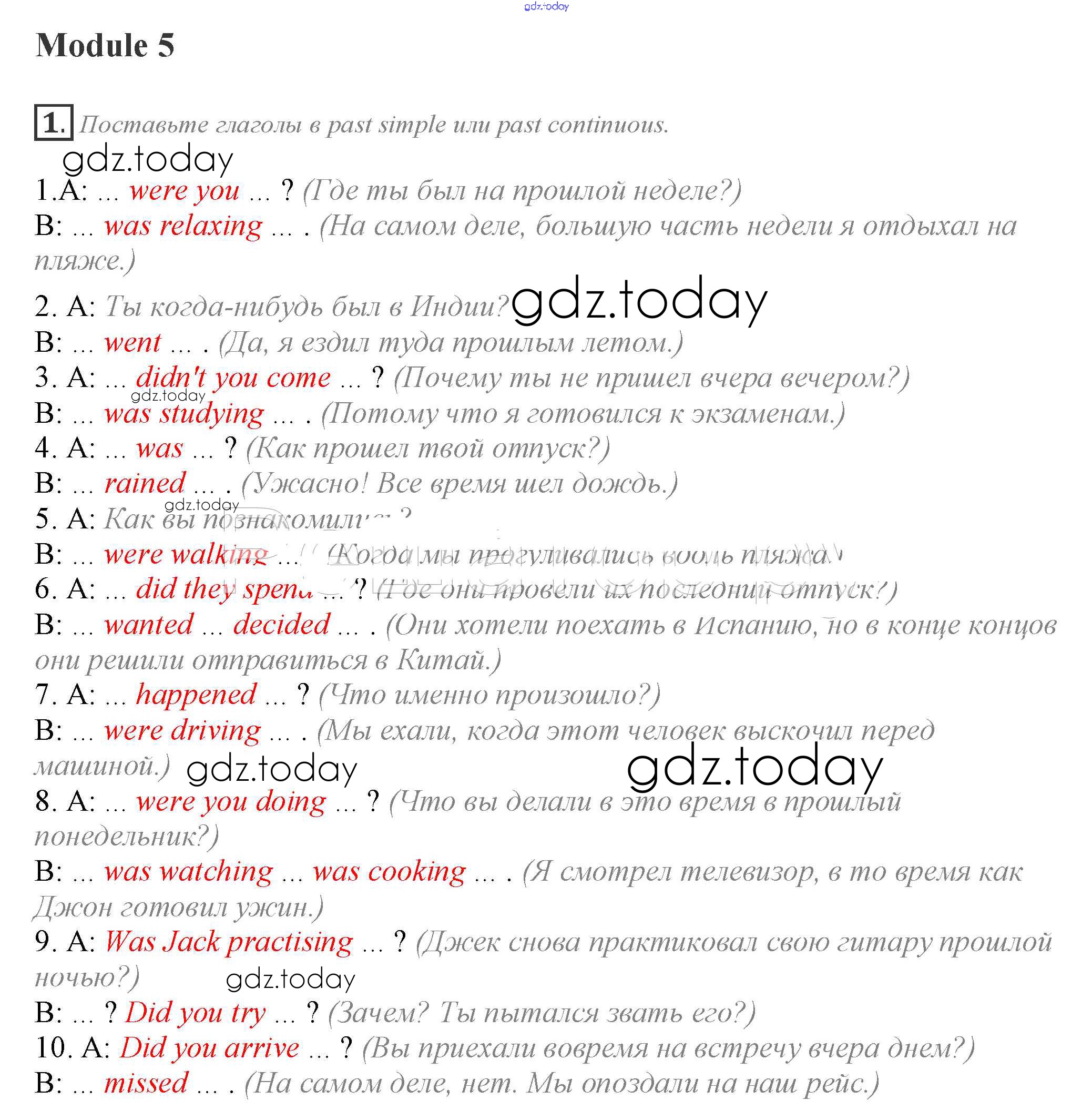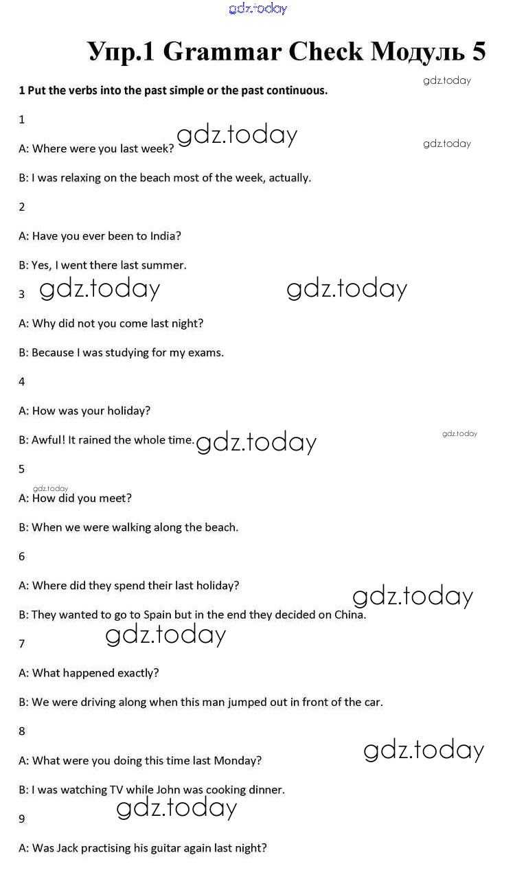 На страницах сайта gdz.today вы найдете учебный и вспомогательный материал, направленный на улучшения знаний школьной программы. ГДЗ - онлайн мир знаний Module 5 Grammar Check 1 Учебнику по Английскому языку для 10 класса Афанасьева, Дули Просвещение Spotlight 2015