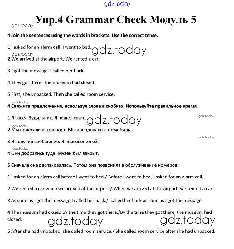 На страницах сайта gdz.today вы найдете учебный и вспомогательный материал, направленный на улучшения знаний школьной программы. ГДЗ - онлайн мир знаний Module 5 Grammar Check 4 Учебнику по Английскому языку для 10 класса Афанасьева, Дули Просвещение Spotlight 2015