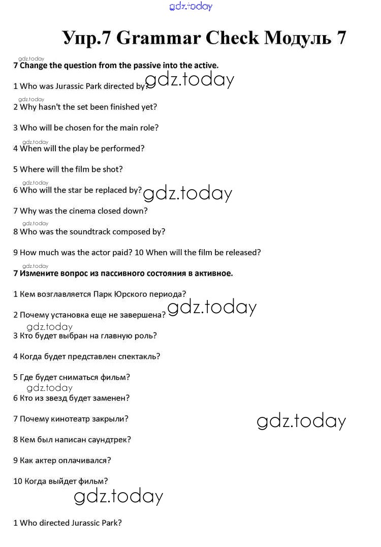 На страницах сайта gdz.today вы найдете учебный и вспомогательный материал, направленный на улучшения знаний школьной программы. ГДЗ - онлайн мир знаний Module 7 Grammar Check 7 Учебнику по Английскому языку для 10 класса Афанасьева, Дули Просвещение Spotlight 2015