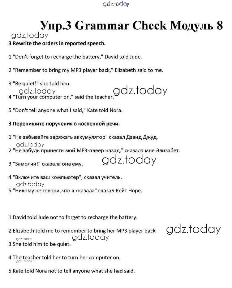 На страницах сайта gdz.today вы найдете учебный и вспомогательный материал, направленный на улучшения знаний школьной программы. ГДЗ - онлайн мир знаний Module 8 Grammar Check 3 Учебнику по Английскому языку для 10 класса Афанасьева, Дули Просвещение Spotlight 2015