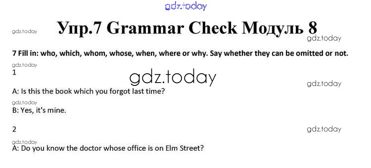 На страницах сайта gdz.today вы найдете учебный и вспомогательный материал, направленный на улучшения знаний школьной программы. ГДЗ - онлайн мир знаний Module 8 Grammar Check 7 Учебнику по Английскому языку для 10 класса Афанасьева, Дули Просвещение Spotlight 2015