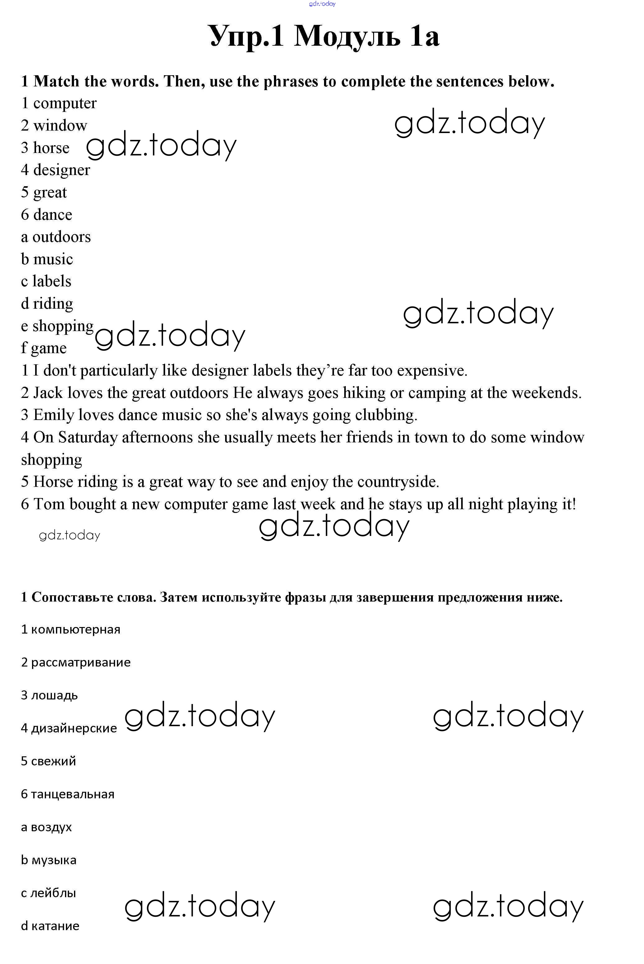 На страницах сайта gdz.today вы найдете учебный и вспомогательный материал, направленный на улучшения знаний школьной программы. ГДЗ - онлайн мир знаний Часть 1a Решение к Module 1 1 Рабочей тетради по Английскому языку для 10 класса Афанасьева, Дули Базовый уровень Просвещение Spotlight 2015