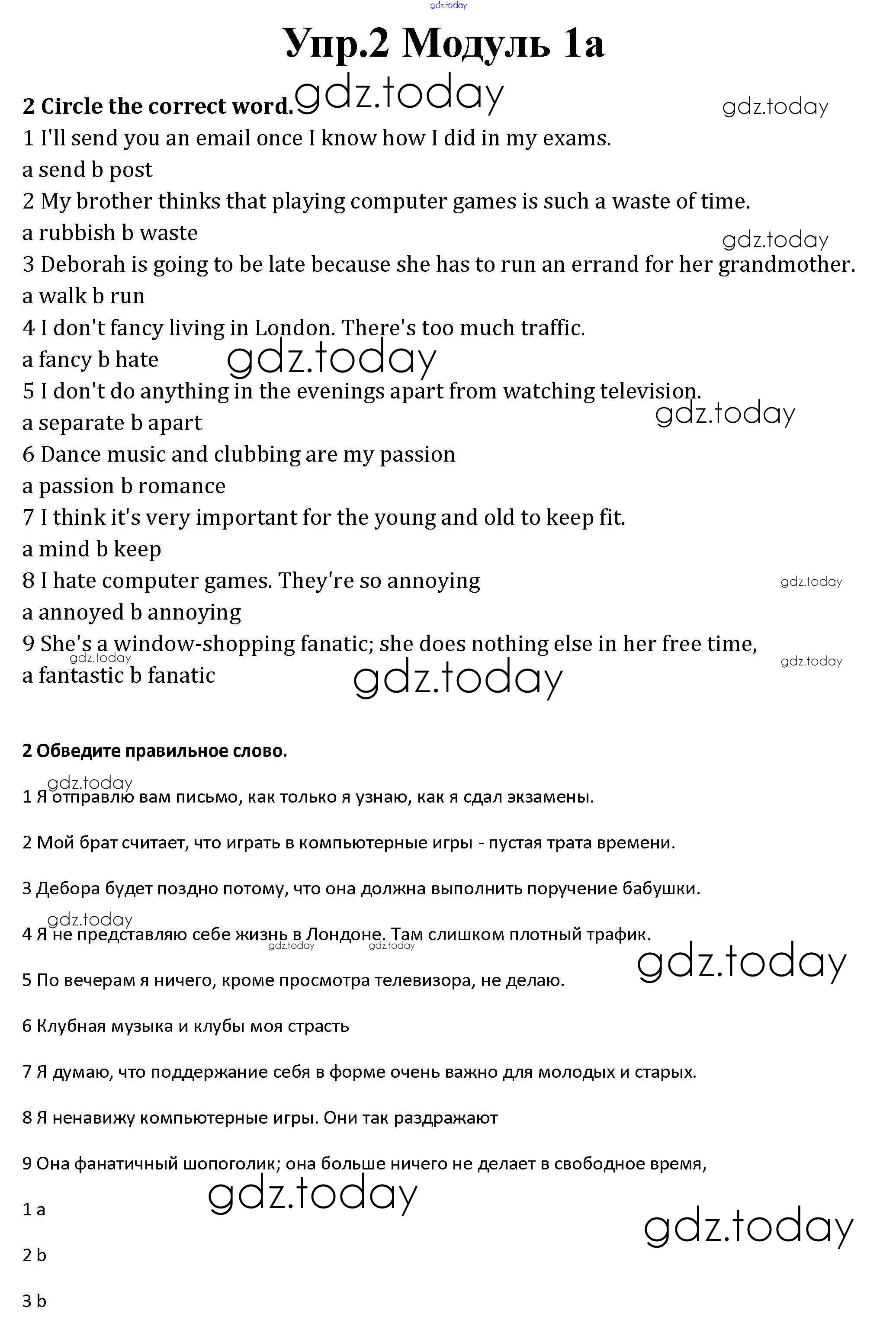 На страницах сайта gdz.today вы найдете учебный и вспомогательный материал, направленный на улучшения знаний школьной программы. ГДЗ - онлайн мир знаний Часть 1a Решение к Module 1 2 Рабочей тетради по Английскому языку для 10 класса Афанасьева, Дули Базовый уровень Просвещение Spotlight 2015