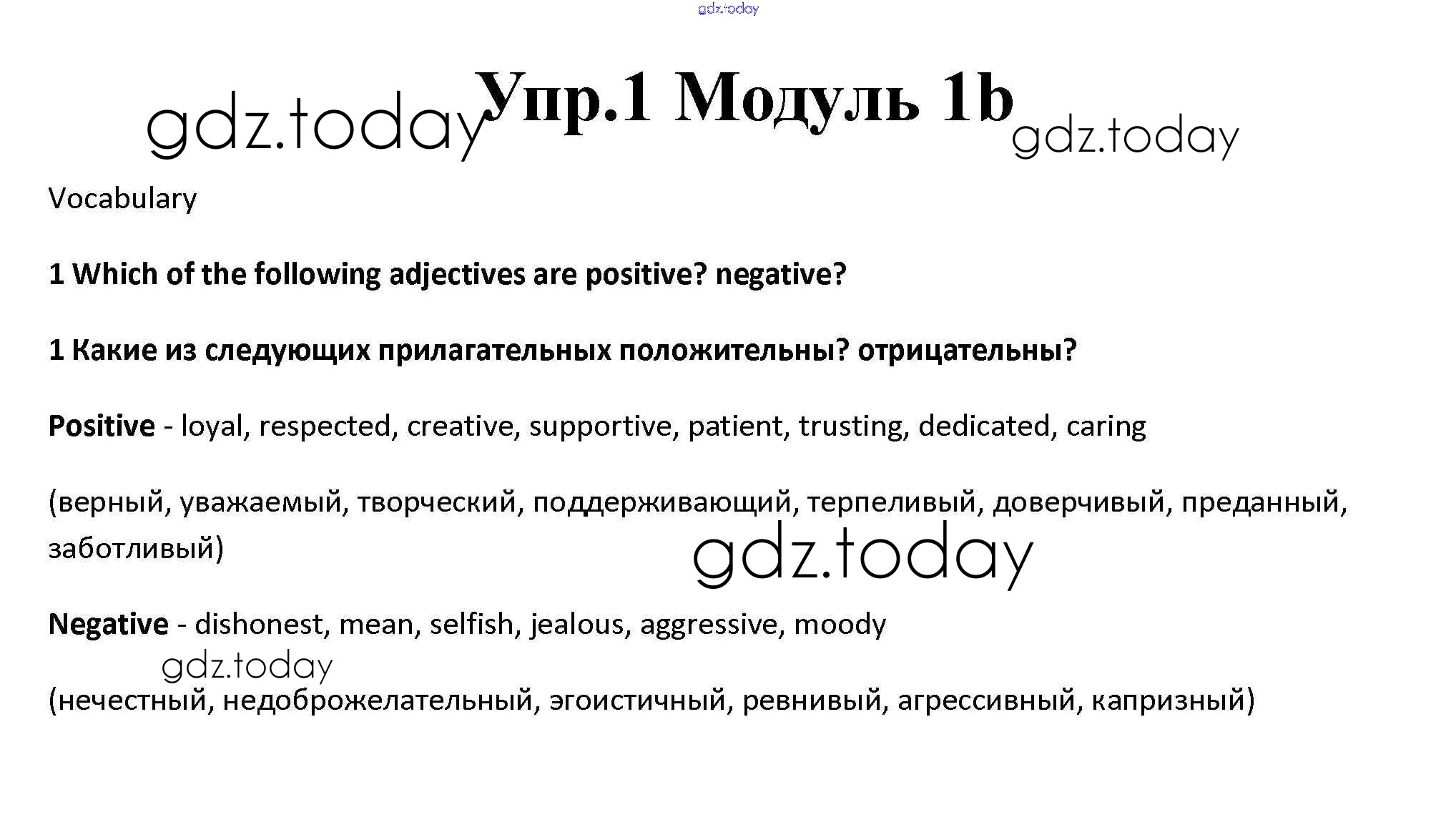 На страницах сайта gdz.today вы найдете учебный и вспомогательный материал, направленный на улучшения знаний школьной программы. ГДЗ - онлайн мир знаний Часть 1b Решение к Module 1 1 Рабочей тетради по Английскому языку для 10 класса Афанасьева, Дули Базовый уровень Просвещение Spotlight 2015