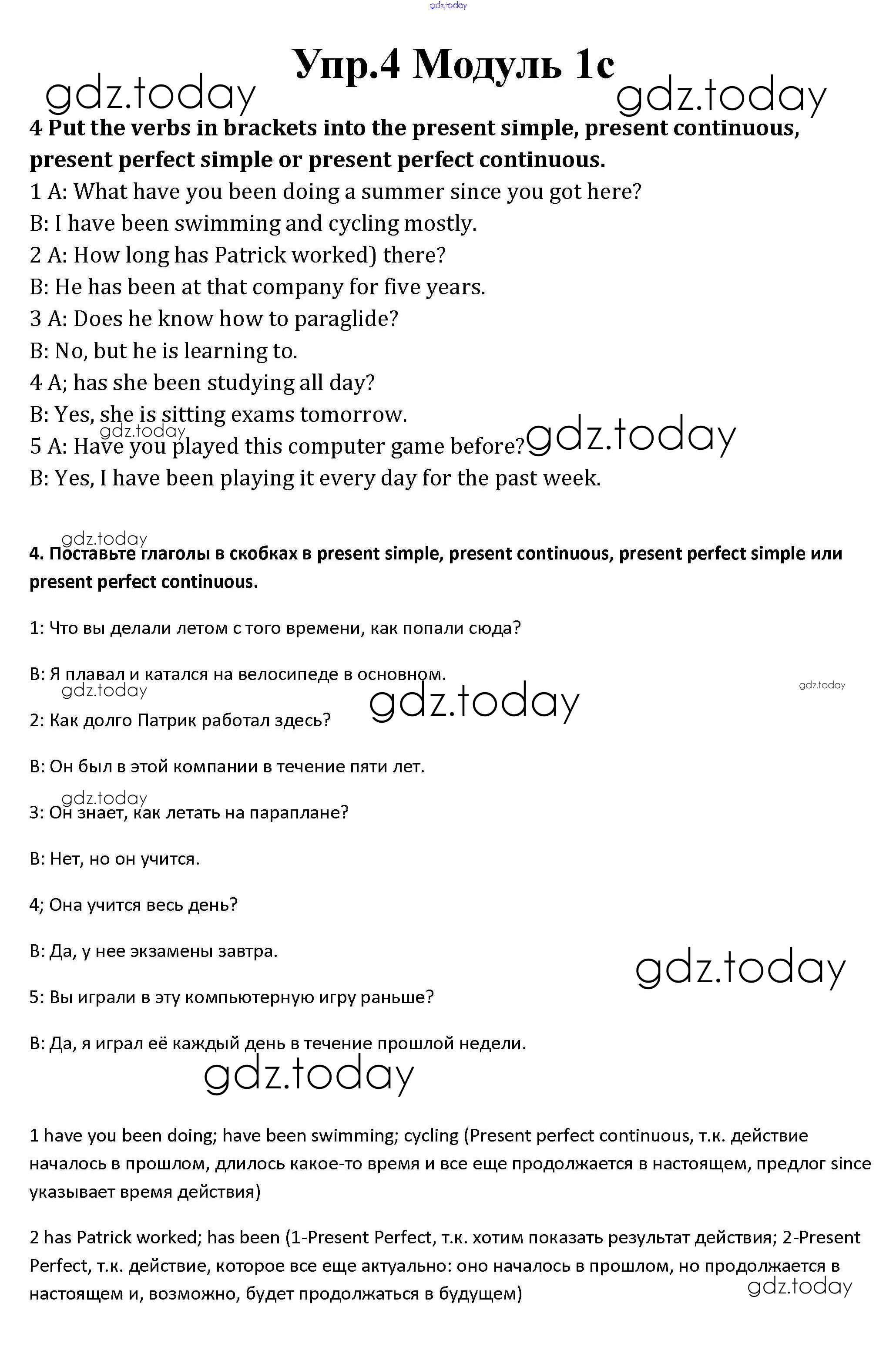 На страницах сайта gdz.today вы найдете учебный и вспомогательный материал, направленный на улучшения знаний школьной программы. ГДЗ - онлайн мир знаний Часть 1c Решение к Module 1 4 Рабочей тетради по Английскому языку для 10 класса Афанасьева, Дули Базовый уровень Просвещение Spotlight 2015