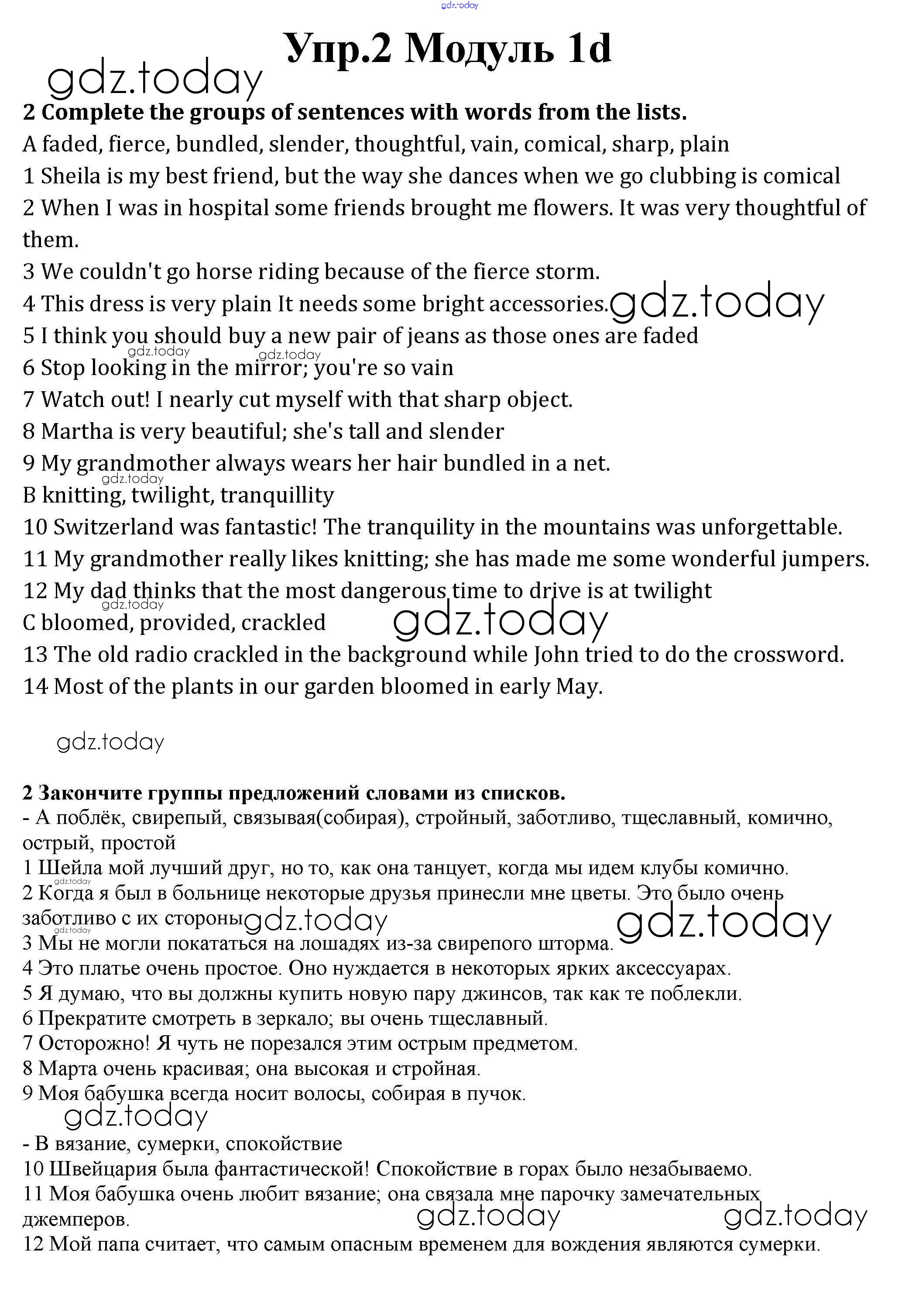 На страницах сайта gdz.today вы найдете учебный и вспомогательный материал, направленный на улучшения знаний школьной программы. ГДЗ - онлайн мир знаний Часть 1d Решение к Module 1 2 Рабочей тетради по Английскому языку для 10 класса Афанасьева, Дули Базовый уровень Просвещение Spotlight 2015