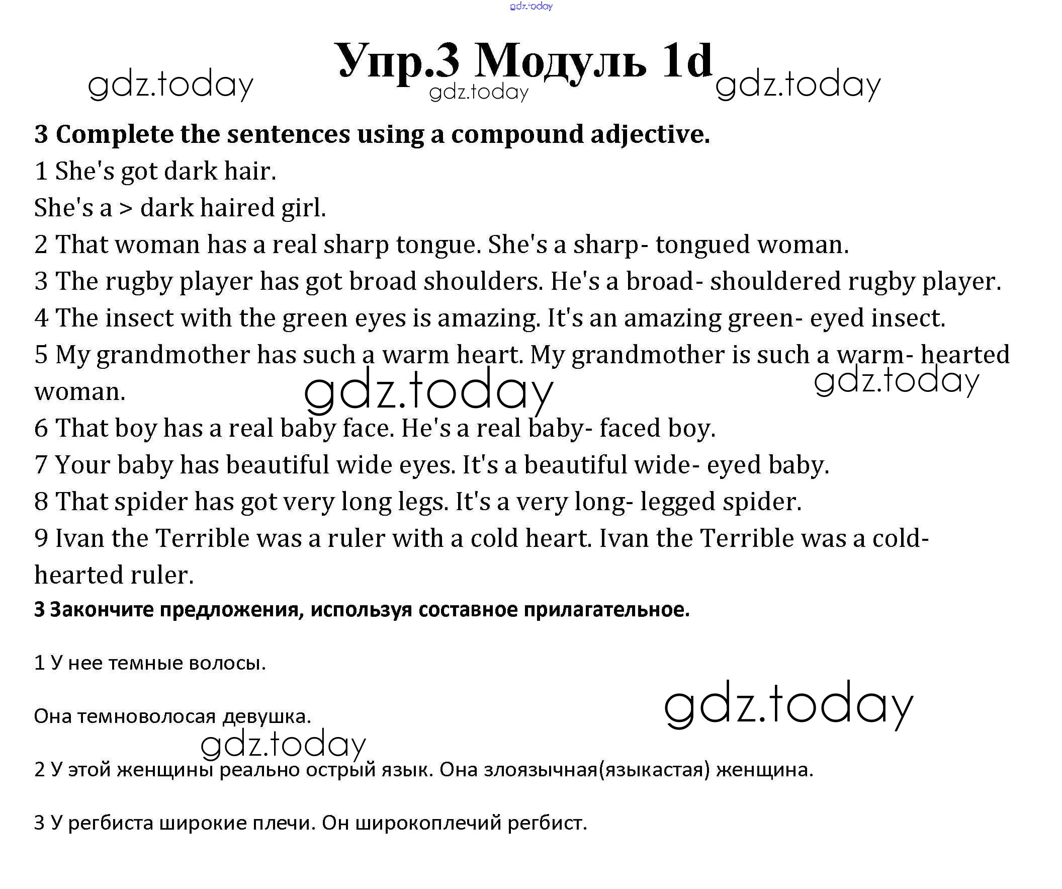 На страницах сайта gdz.today вы найдете учебный и вспомогательный материал, направленный на улучшения знаний школьной программы. ГДЗ - онлайн мир знаний Часть 1d Решение к Module 1 3 Рабочей тетради по Английскому языку для 10 класса Афанасьева, Дули Базовый уровень Просвещение Spotlight 2015