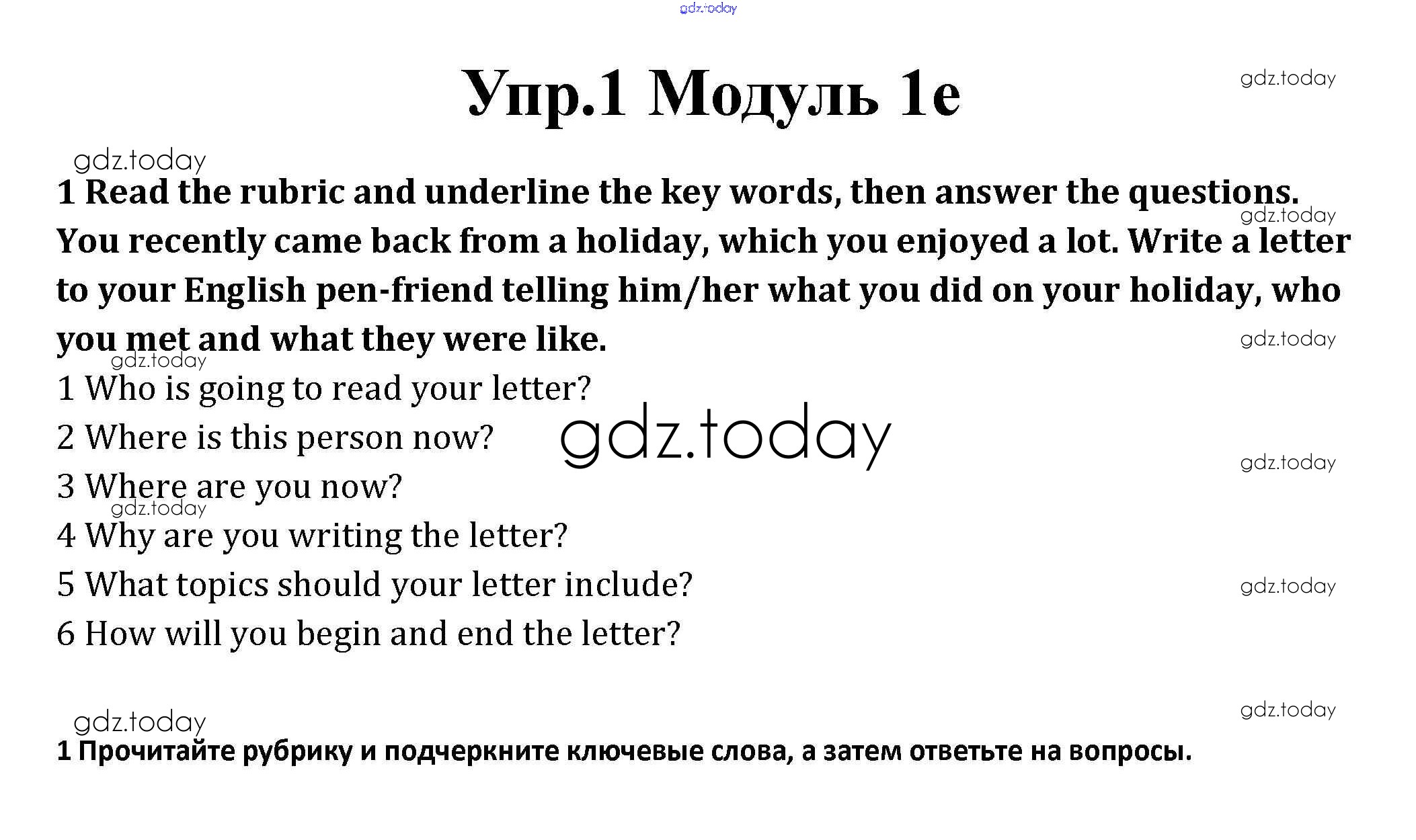 На страницах сайта gdz.today вы найдете учебный и вспомогательный материал, направленный на улучшения знаний школьной программы. ГДЗ - онлайн мир знаний Часть 1e Решение к Module 1 1 Рабочей тетради по Английскому языку для 10 класса Афанасьева, Дули Базовый уровень Просвещение Spotlight 2015