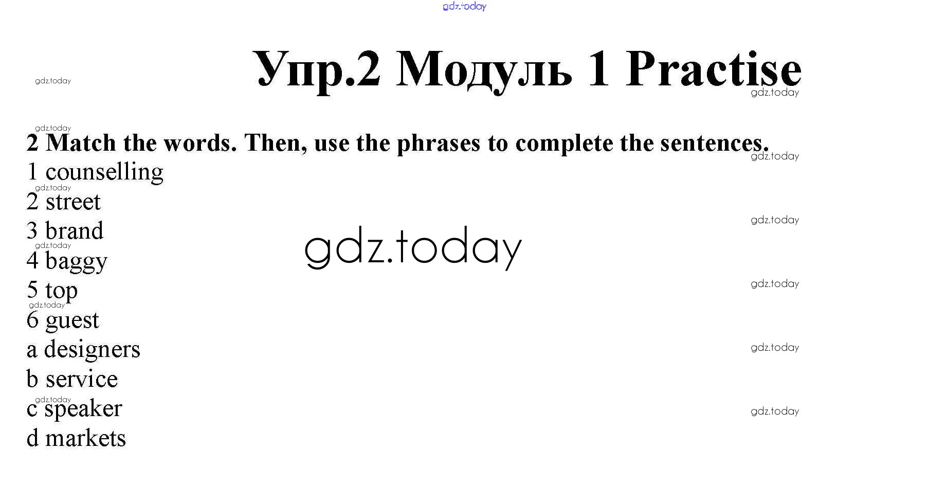 На страницах сайта gdz.today вы найдете учебный и вспомогательный материал, направленный на улучшения знаний школьной программы. ГДЗ - онлайн мир знаний Vocabulary Practice Решение к Module 1 2 Рабочей тетради по Английскому языку для 10 класса Афанасьева, Дули Базовый уровень Просвещение Spotlight 2015