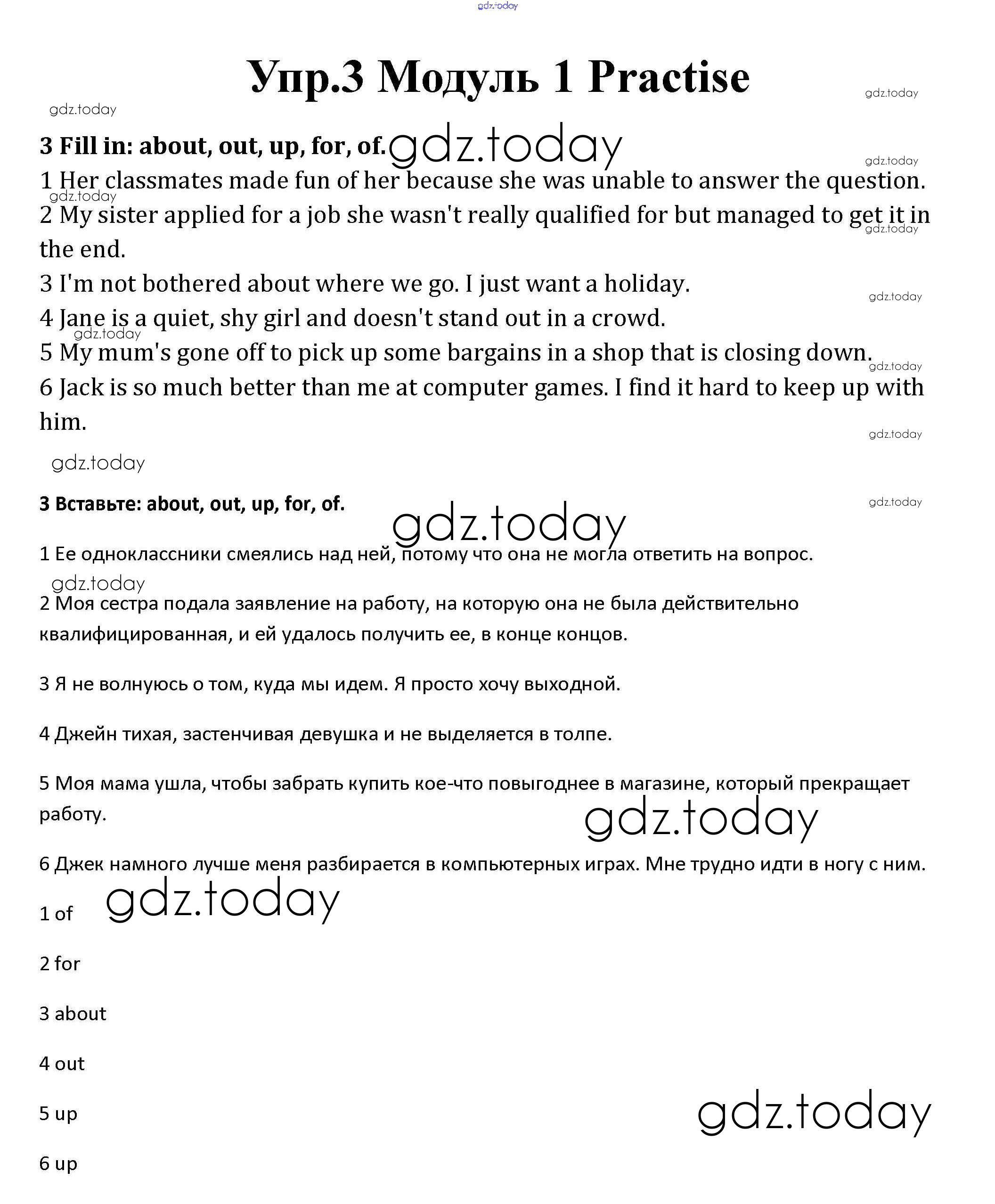 На страницах сайта gdz.today вы найдете учебный и вспомогательный материал, направленный на улучшения знаний школьной программы. ГДЗ - онлайн мир знаний Vocabulary Practice Решение к Module 1 3 Рабочей тетради по Английскому языку для 10 класса Афанасьева, Дули Базовый уровень Просвещение Spotlight 2015