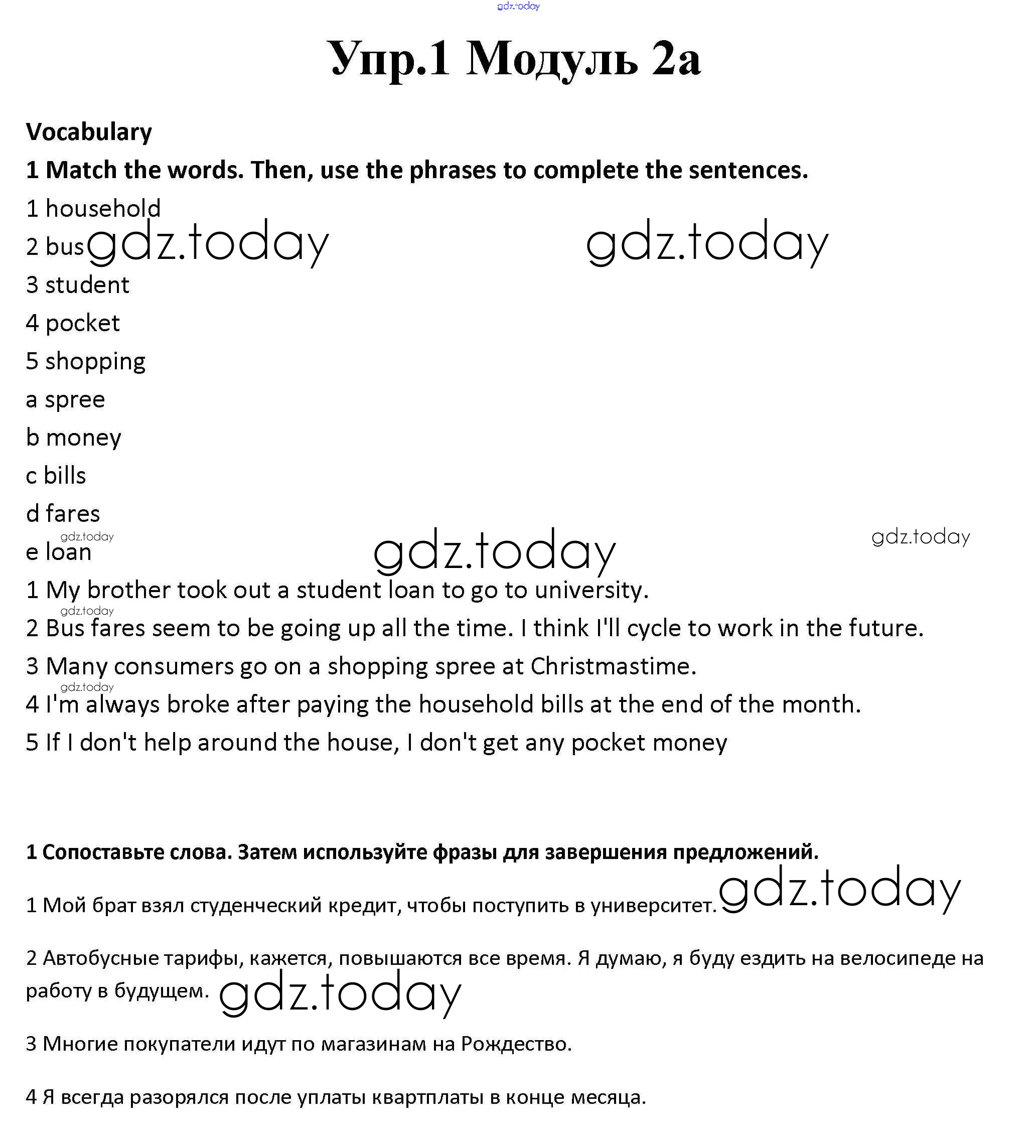 На страницах сайта gdz.today вы найдете учебный и вспомогательный материал, направленный на улучшения знаний школьной программы. ГДЗ - онлайн мир знаний Часть 2a Решение к Module 2 1 Рабочей тетради по Английскому языку для 10 класса Афанасьева, Дули Базовый уровень Просвещение Spotlight 2015