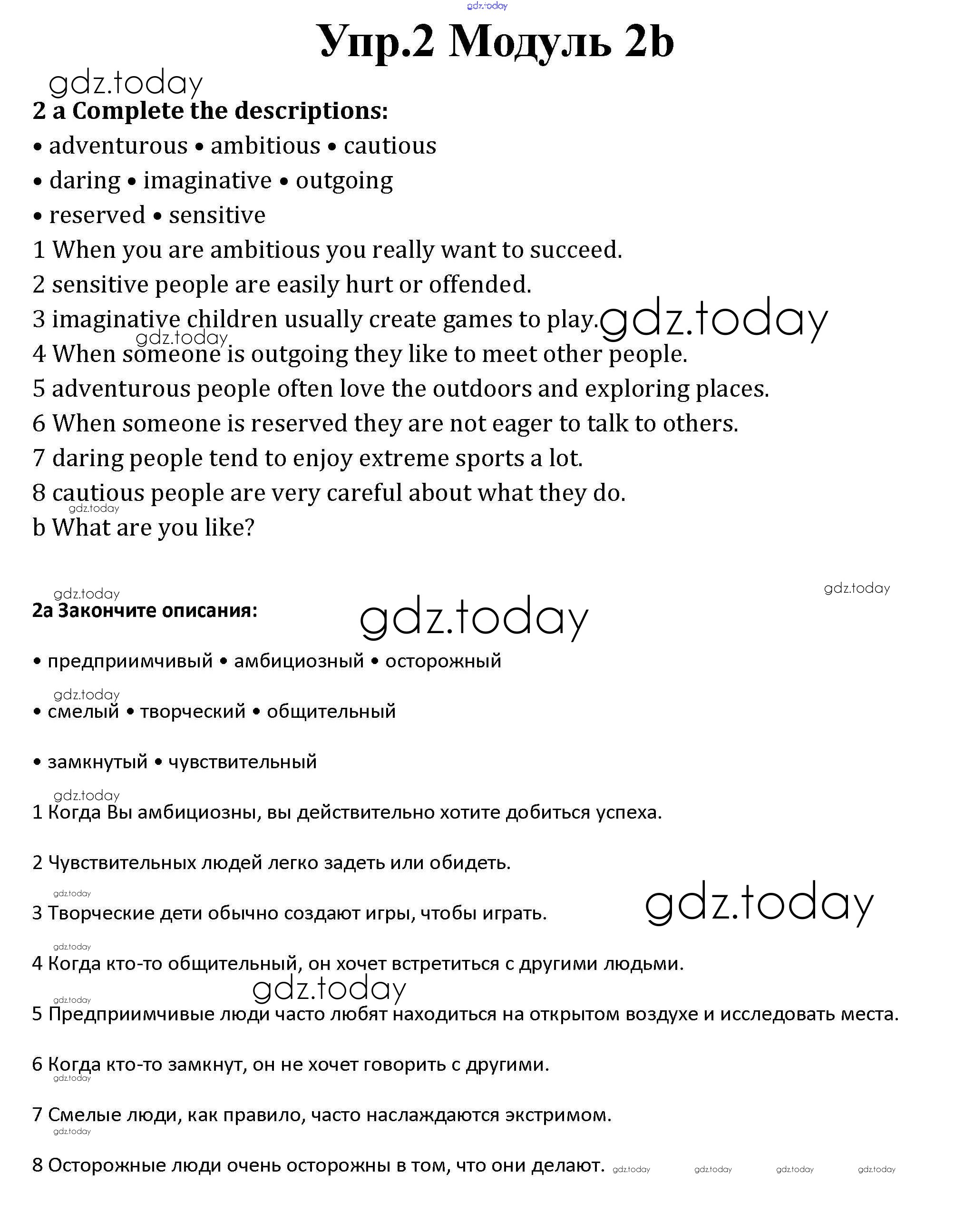 На страницах сайта gdz.today вы найдете учебный и вспомогательный материал, направленный на улучшения знаний школьной программы. ГДЗ - онлайн мир знаний Часть 2b Решение к Module 2 2 Рабочей тетради по Английскому языку для 10 класса Афанасьева, Дули Базовый уровень Просвещение Spotlight 2015
