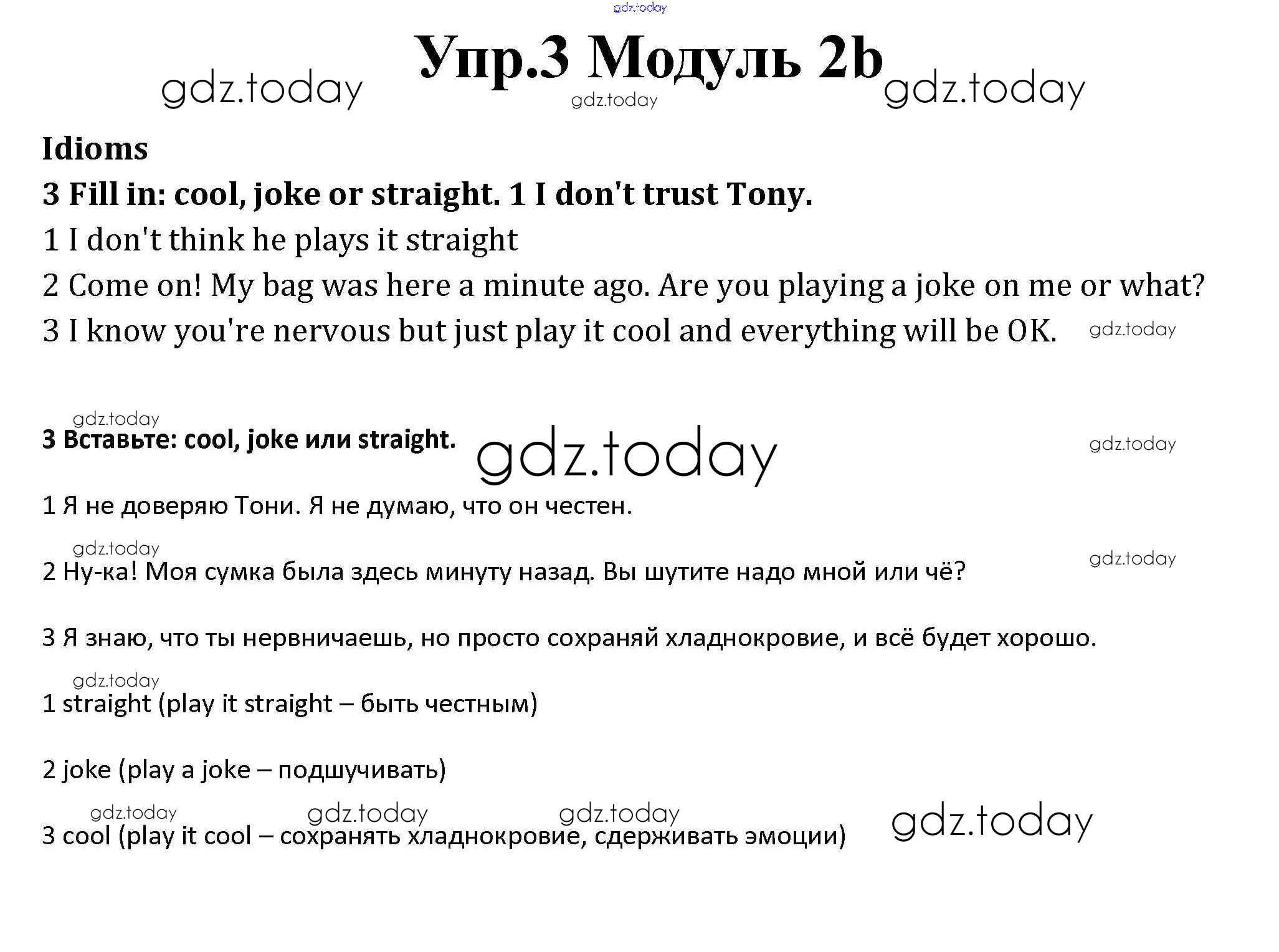 На страницах сайта gdz.today вы найдете учебный и вспомогательный материал, направленный на улучшения знаний школьной программы. ГДЗ - онлайн мир знаний Часть 2b Решение к Module 2 3 Рабочей тетради по Английскому языку для 10 класса Афанасьева, Дули Базовый уровень Просвещение Spotlight 2015