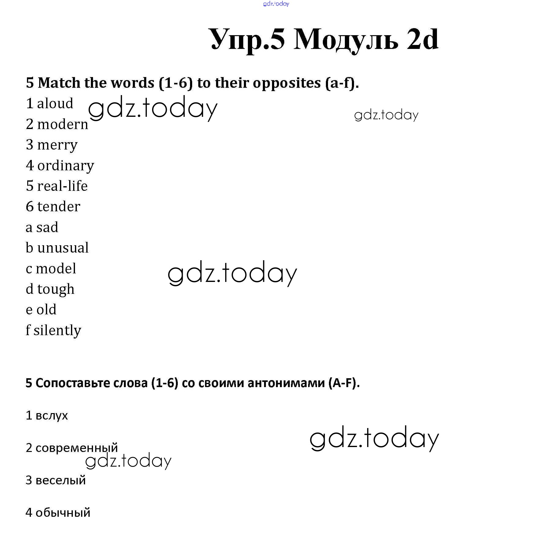 На страницах сайта gdz.today вы найдете учебный и вспомогательный материал, направленный на улучшения знаний школьной программы. ГДЗ - онлайн мир знаний Часть 2d Решение к Module 2 5 Рабочей тетради по Английскому языку для 10 класса Афанасьева, Дули Базовый уровень Просвещение Spotlight 2015
