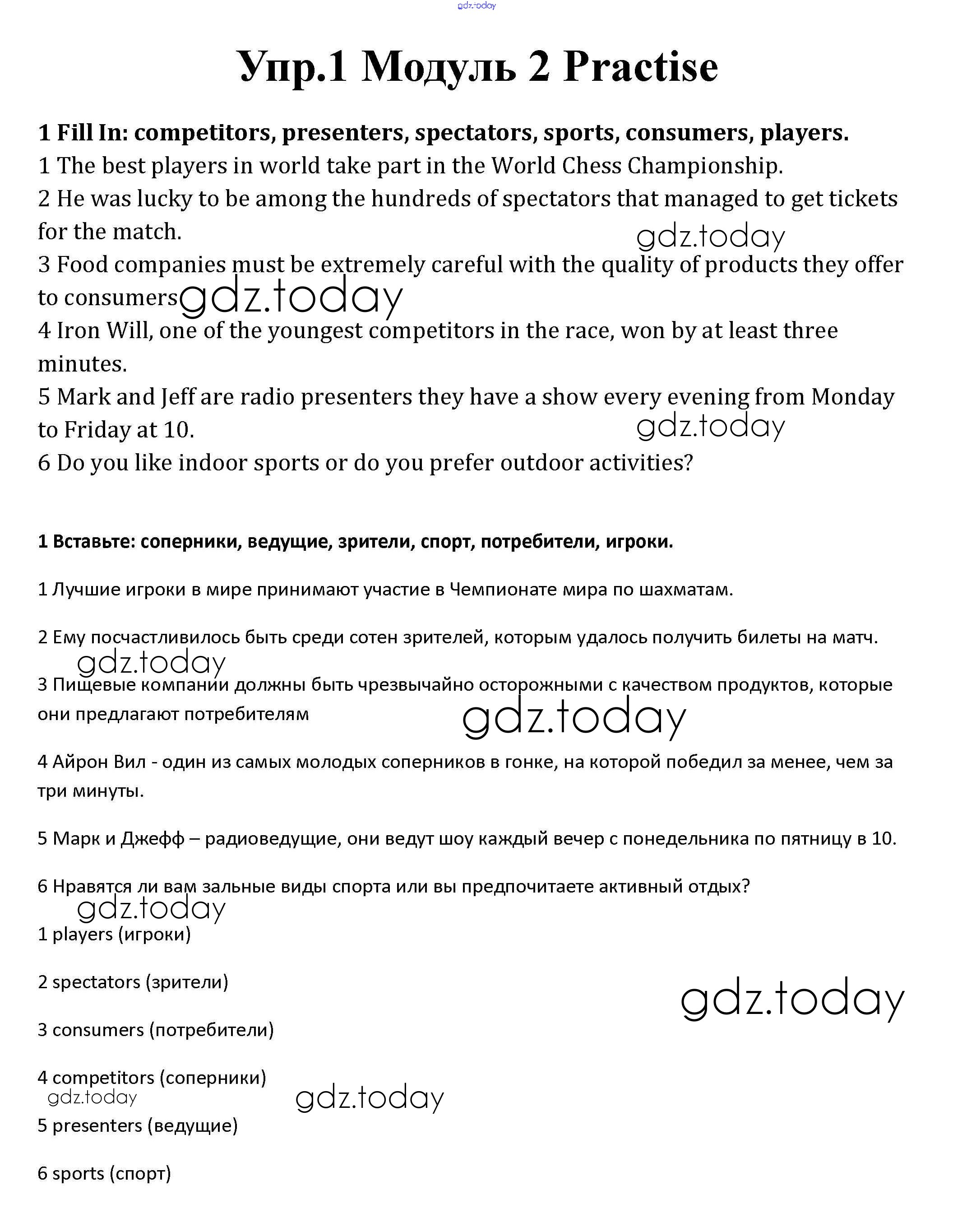 На страницах сайта gdz.today вы найдете учебный и вспомогательный материал, направленный на улучшения знаний школьной программы. ГДЗ - онлайн мир знаний Vocabulary Practice Решение к Module 2 1 Рабочей тетради по Английскому языку для 10 класса Афанасьева, Дули Базовый уровень Просвещение Spotlight 2015
