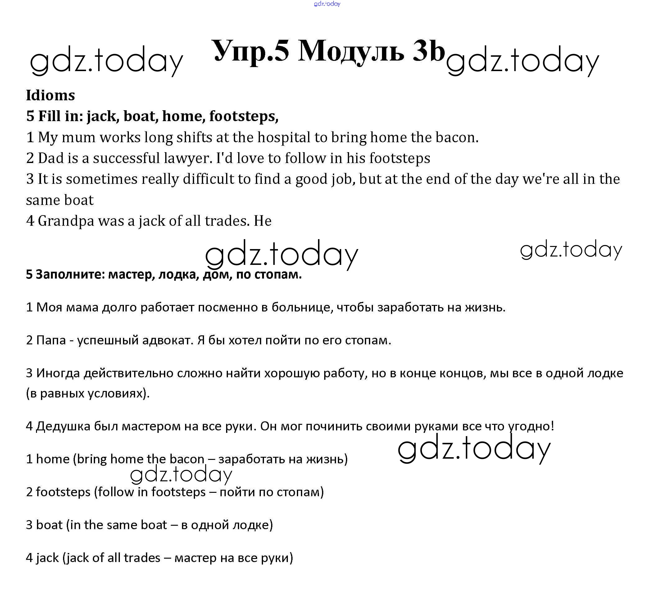 На страницах сайта gdz.today вы найдете учебный и вспомогательный материал, направленный на улучшения знаний школьной программы. ГДЗ - онлайн мир знаний Часть 3b Решение к Module 3 5 Рабочей тетради по Английскому языку для 10 класса Афанасьева, Дули Базовый уровень Просвещение Spotlight 2015