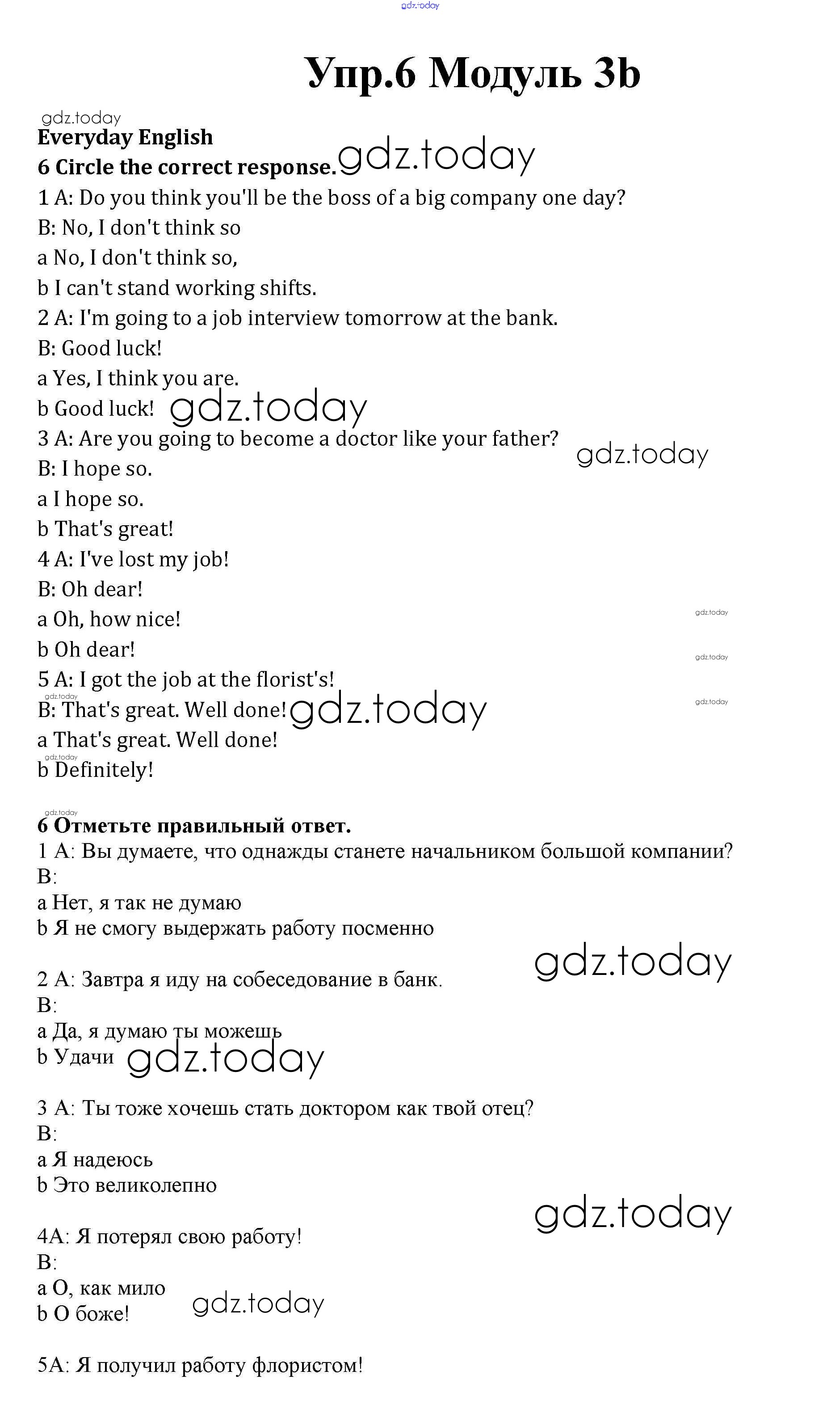 На страницах сайта gdz.today вы найдете учебный и вспомогательный материал, направленный на улучшения знаний школьной программы. ГДЗ - онлайн мир знаний Часть 3b Решение к Module 3 6 Рабочей тетради по Английскому языку для 10 класса Афанасьева, Дули Базовый уровень Просвещение Spotlight 2015