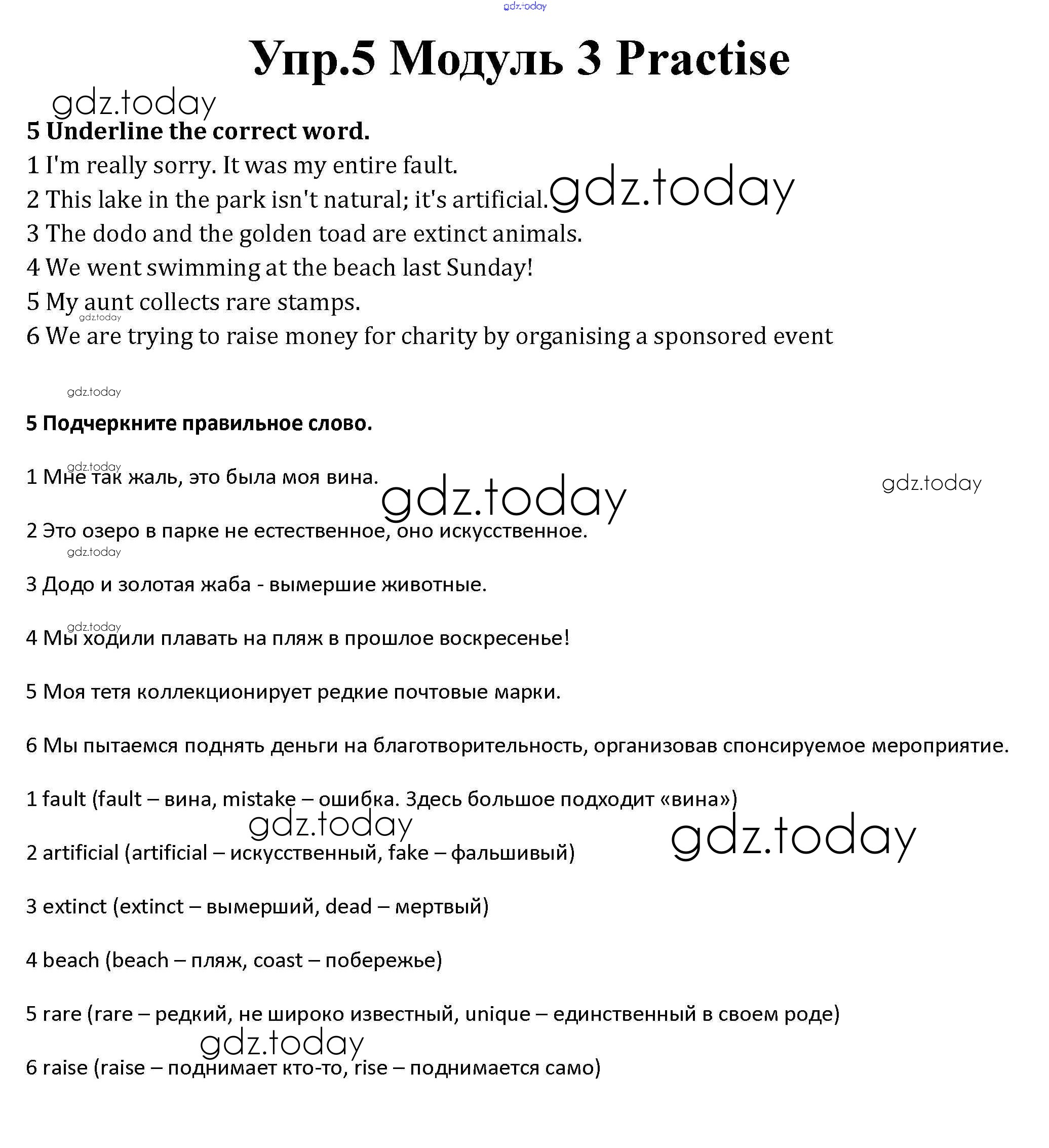 На страницах сайта gdz.today вы найдете учебный и вспомогательный материал, направленный на улучшения знаний школьной программы. ГДЗ - онлайн мир знаний Vocabulary Practice Решение к Module 3 5 Рабочей тетради по Английскому языку для 10 класса Афанасьева, Дули Базовый уровень Просвещение Spotlight 2015