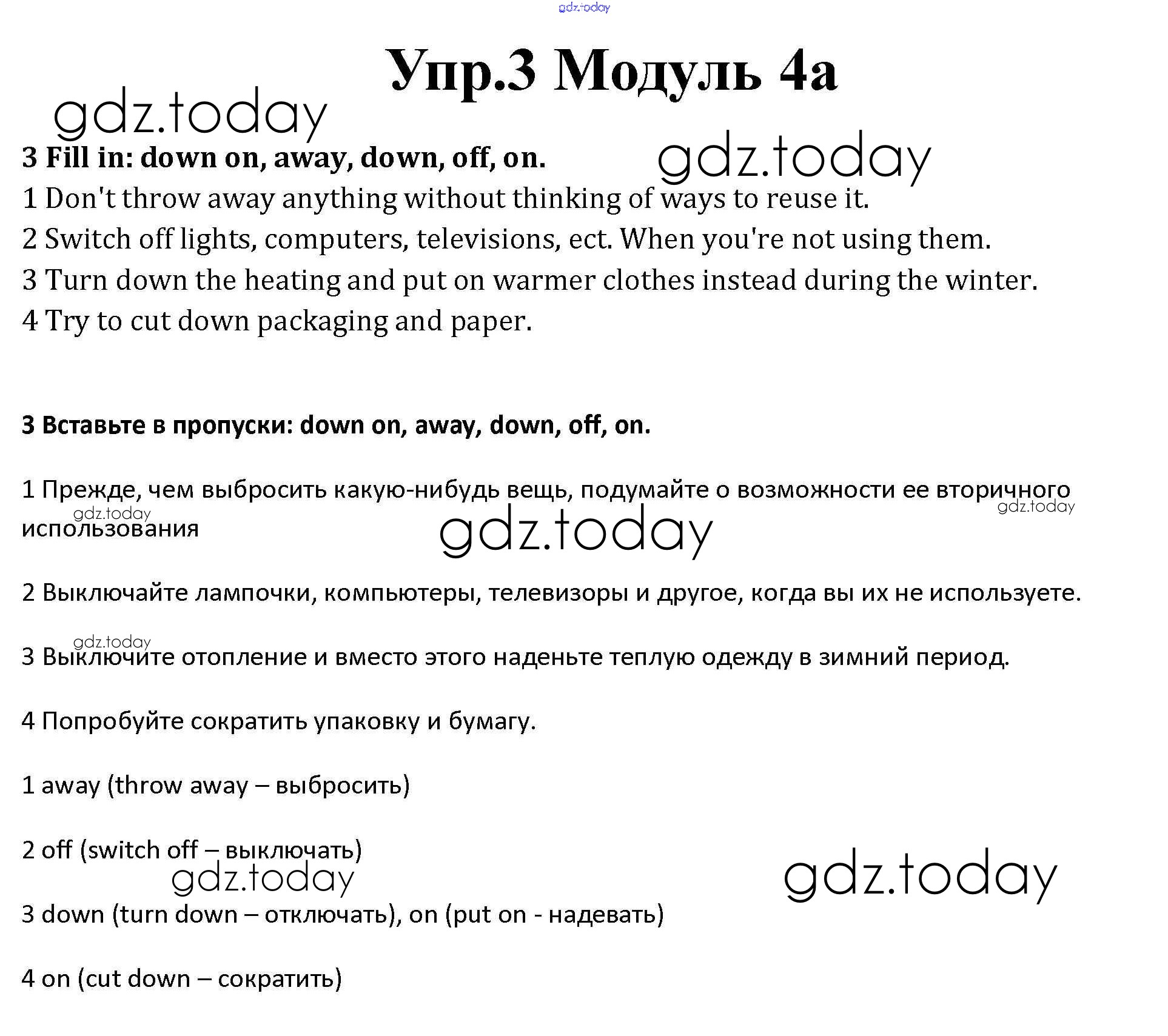 На страницах сайта gdz.today вы найдете учебный и вспомогательный материал, направленный на улучшения знаний школьной программы. ГДЗ - онлайн мир знаний Часть 4a Решение к Module 4 3 Рабочей тетради по Английскому языку для 10 класса Афанасьева, Дули Базовый уровень Просвещение Spotlight 2015