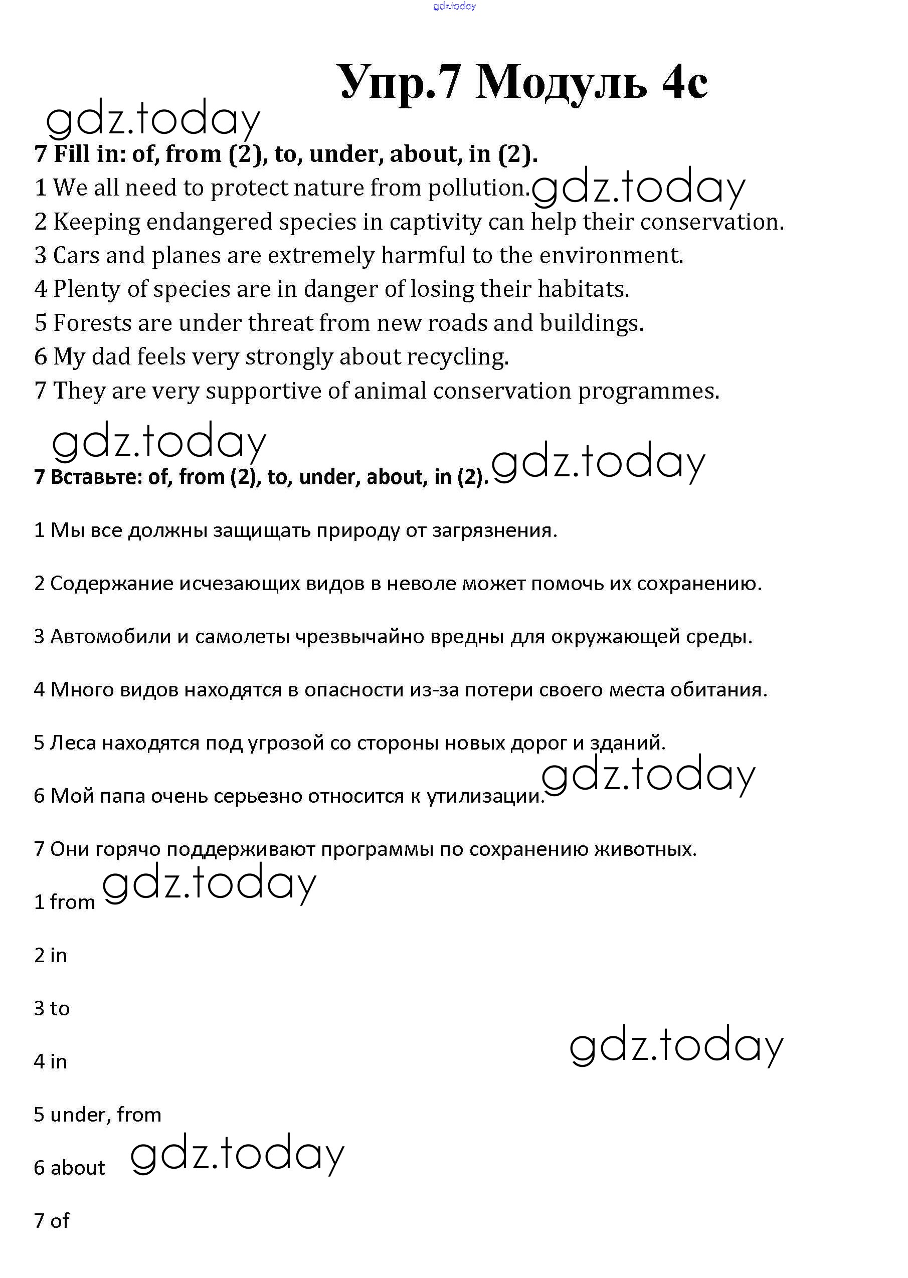 На страницах сайта gdz.today вы найдете учебный и вспомогательный материал, направленный на улучшения знаний школьной программы. ГДЗ - онлайн мир знаний Часть 4c Решение к Module 4 7 Рабочей тетради по Английскому языку для 10 класса Афанасьева, Дули Базовый уровень Просвещение Spotlight 2015