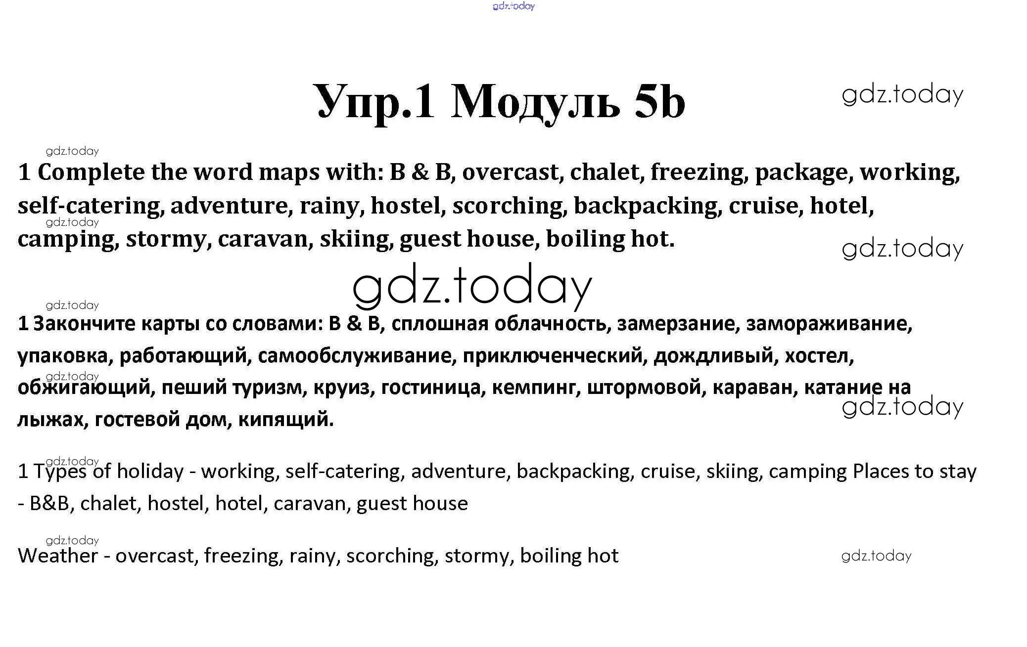 На страницах сайта gdz.today вы найдете учебный и вспомогательный материал, направленный на улучшения знаний школьной программы. ГДЗ - онлайн мир знаний Часть 5b Решение к Module 5 1 Рабочей тетради по Английскому языку для 10 класса Афанасьева, Дули Базовый уровень Просвещение Spotlight 2015