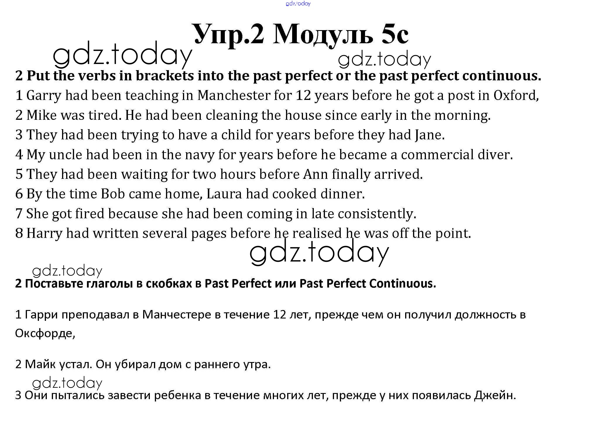 На страницах сайта gdz.today вы найдете учебный и вспомогательный материал, направленный на улучшения знаний школьной программы. ГДЗ - онлайн мир знаний Часть 5c Решение к Module 5 2 Рабочей тетради по Английскому языку для 10 класса Афанасьева, Дули Базовый уровень Просвещение Spotlight 2015