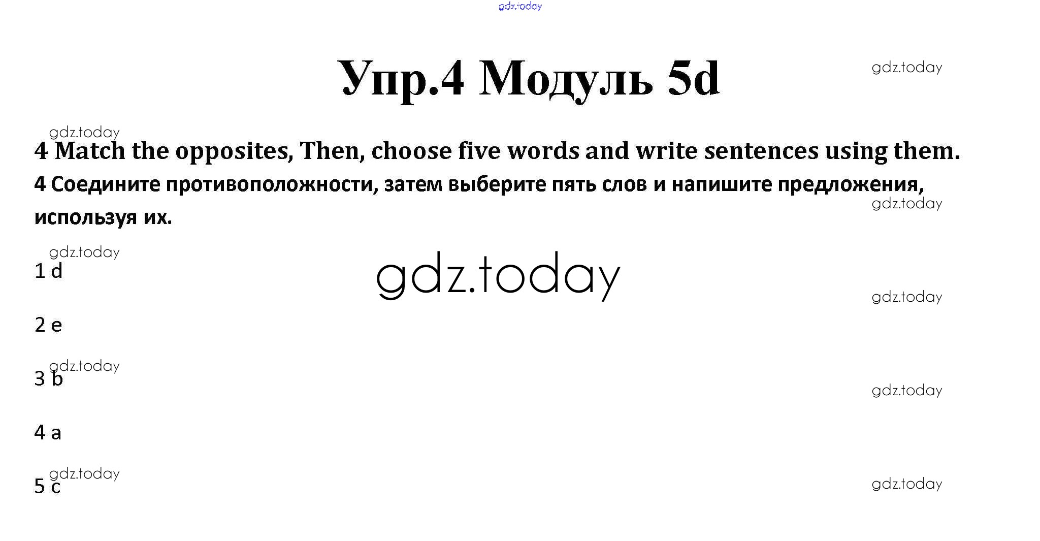 На страницах сайта gdz.today вы найдете учебный и вспомогательный материал, направленный на улучшения знаний школьной программы. ГДЗ - онлайн мир знаний Часть 5d Решение к Module 5 4 Рабочей тетради по Английскому языку для 10 класса Афанасьева, Дули Базовый уровень Просвещение Spotlight 2015