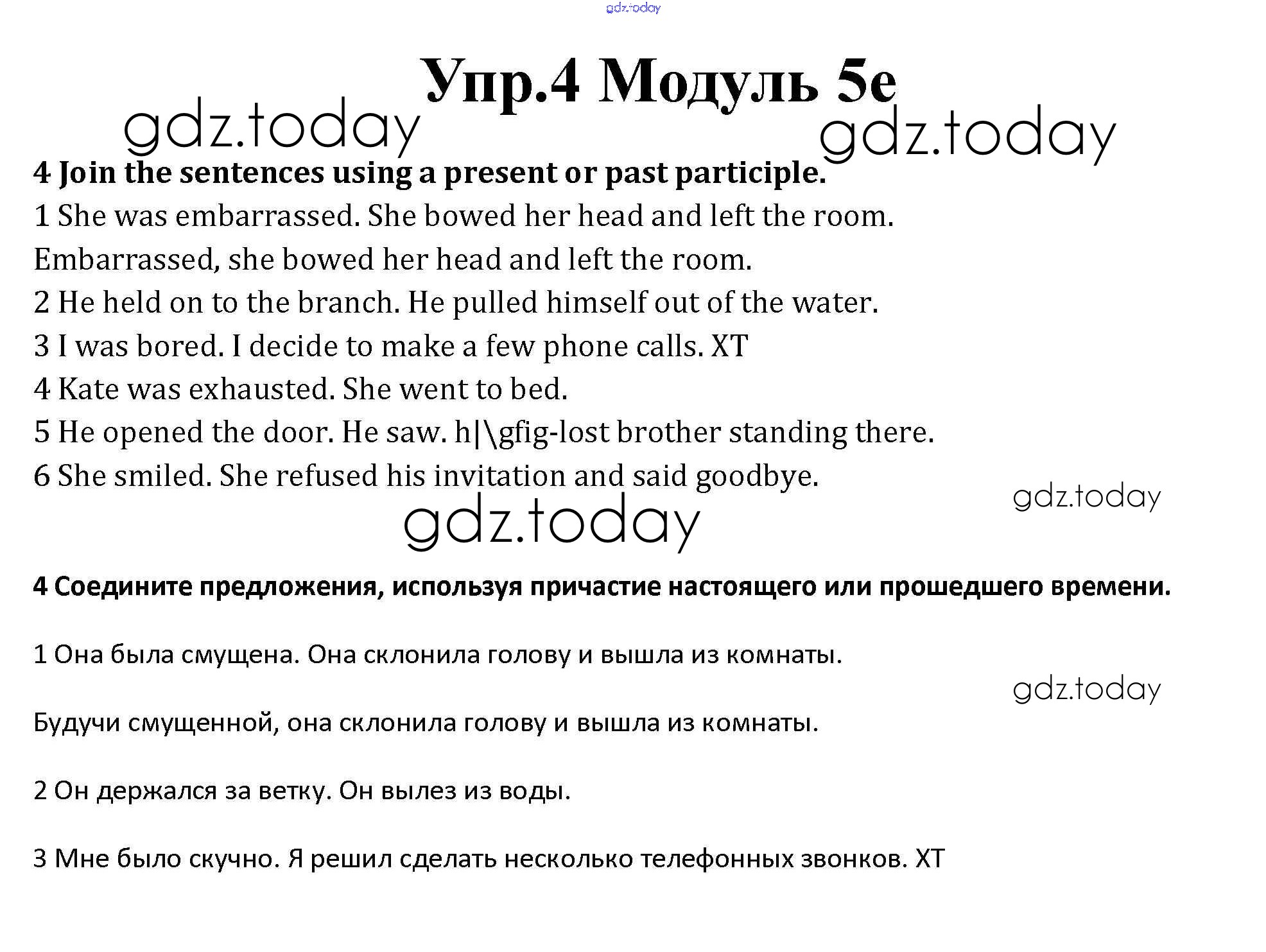 На страницах сайта gdz.today вы найдете учебный и вспомогательный материал, направленный на улучшения знаний школьной программы. ГДЗ - онлайн мир знаний Часть 5e Решение к Module 5 4 Рабочей тетради по Английскому языку для 10 класса Афанасьева, Дули Базовый уровень Просвещение Spotlight 2015